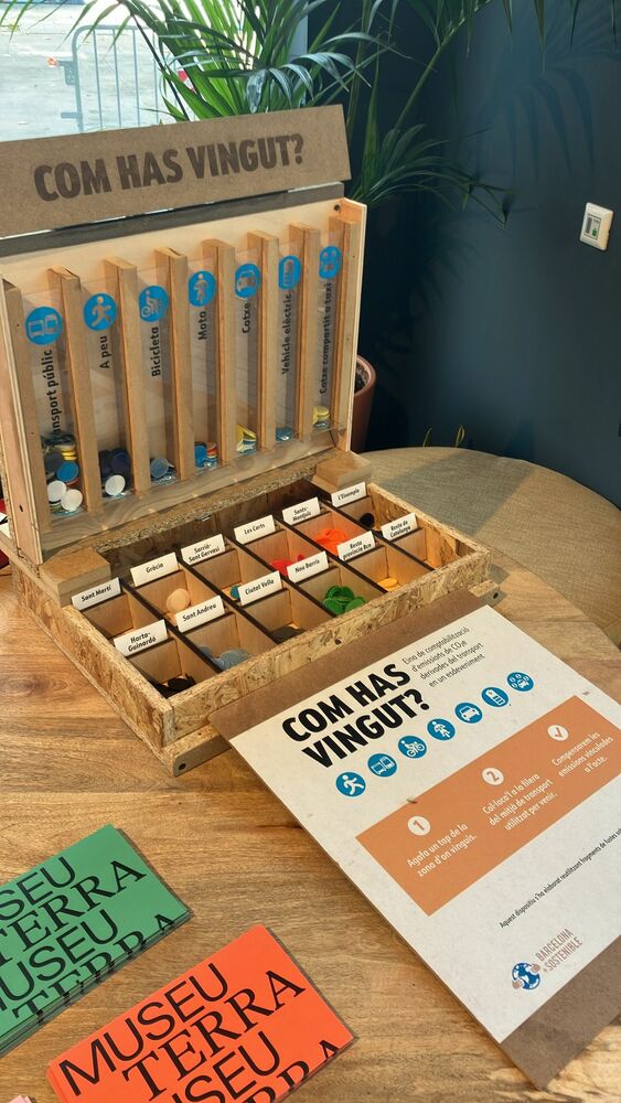 - Hem fet servir el kit "Com has vingut" per mesurar les emissions en el desplaçament de totes les persones que van assistir a la inauguració de l'exposició Plàstic. Genial o pervers?, a la Sala BCN del Museu Terra (Fundació Carulla). Com un dels nostres objectius era atraure gent del barri, hem pogut veure que ho hem aconseguit i que aquestes persones van arribar a la Fundació a peu, sense generar emissions. També hem pogut veure que la majoria dels assistents va arribar en transport públic. El desplaçament en cotxe va ser resultat sobretot de la distància entre el punt d'origen i la ubicació de l'exposició. Treballarem per intentar reduir-ho.