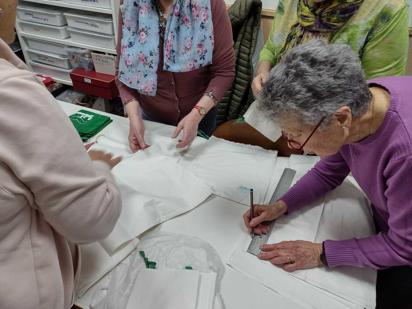 - Hem treballat activament mitjançant grups de treball, generant xarxa i relacions entre associades i associats per tal del preparar les "bosses de roba" per els obsequis en la nostra 31a convocatòria dep projecte:"Les àvies i els avis escriuen contes i els infants els dibuixen". La resposta per part de les persones que han participat ha sigut extraordinària. Van fer un crit per tal de recollir llançols de cotó per poder confeccionar les bosses. De la mà d'expertes costureres la resta desl grups han seguit les instruccions i hem repartit les tasques, per tal de que moltes més persones puguessin participar. El resultat ha estat fantàstic, amb una producció de 300 unitats.