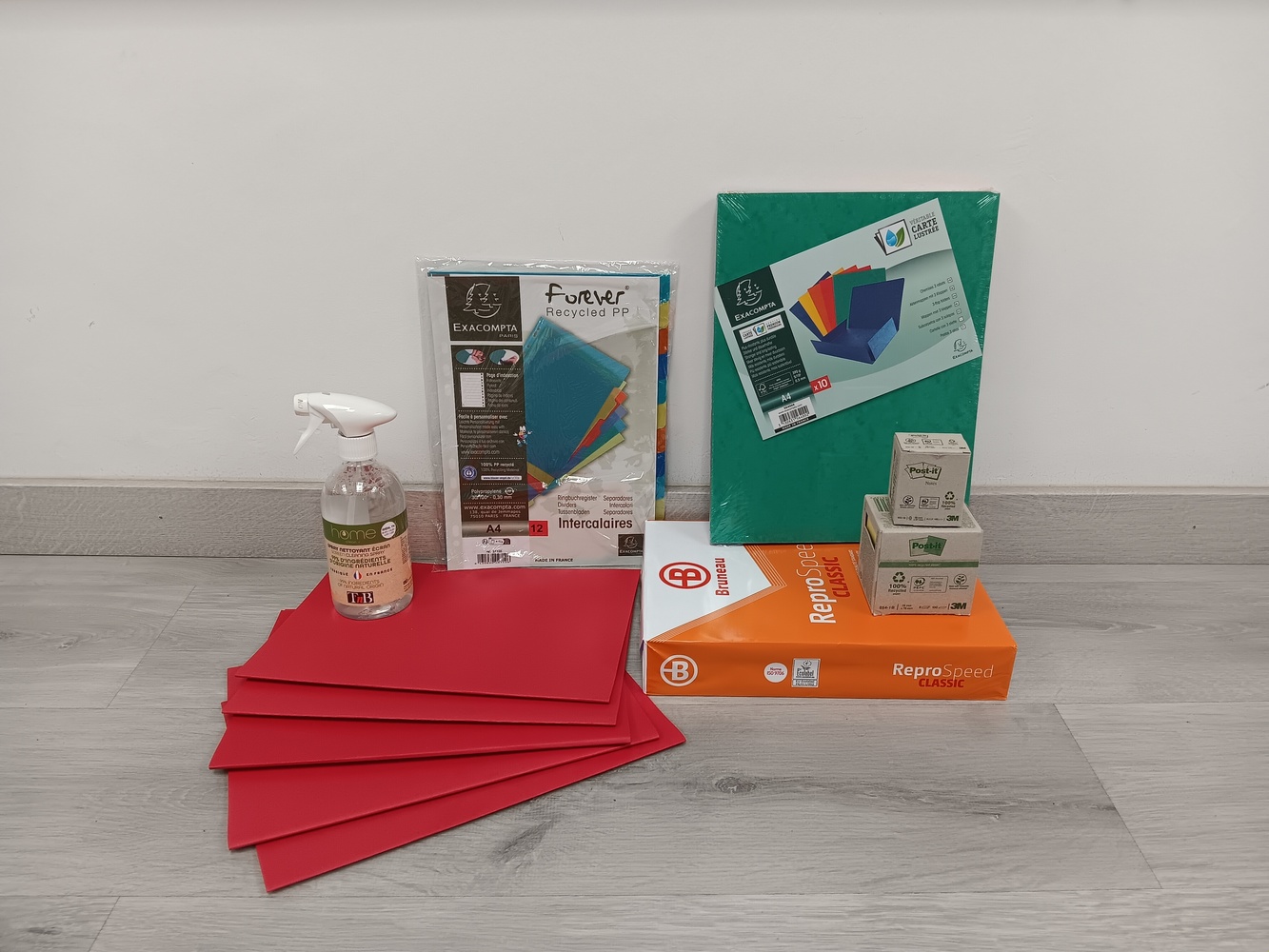- Estem substituint els productes de neteja, per productes d'origen natural. Comprem material d'oficina reciclat.