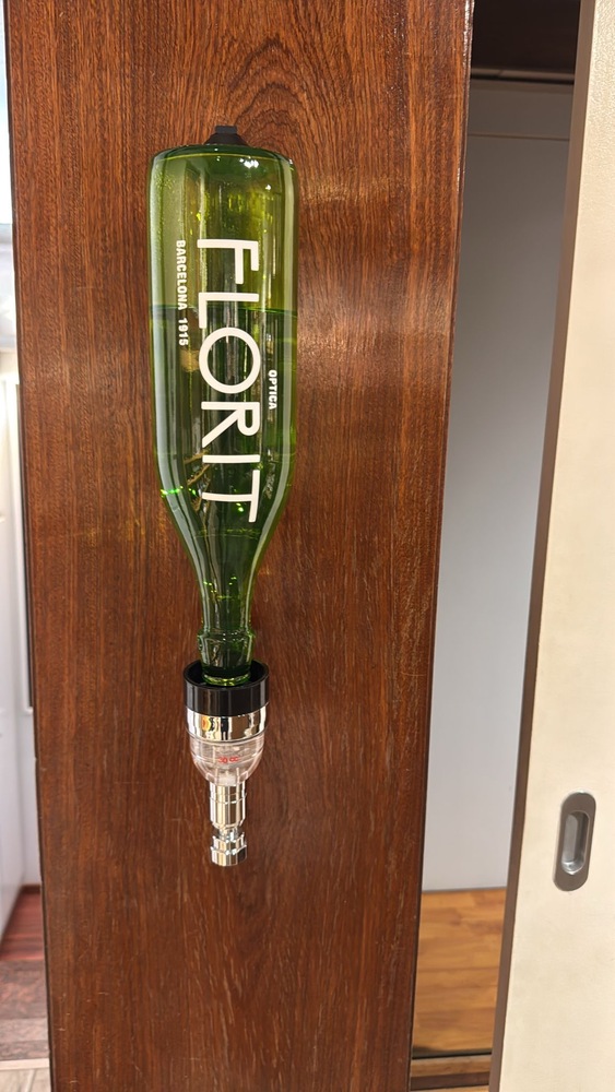 - Regalem a la clientela unes ampolles amb liquid per netejar les ulleres que poden venir a omplir al dispensador de les nostres botigues sempre que ho necessitin i de forma gratuita.