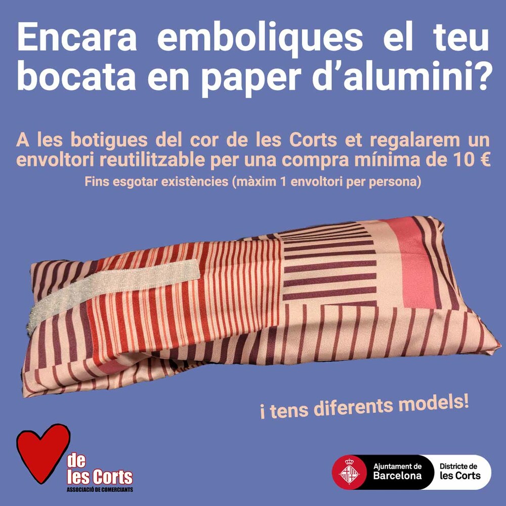 Entrega per compra mínima per part dels comerços associats d’una bossa per embolicar entrepans de material rentable i reciclable.