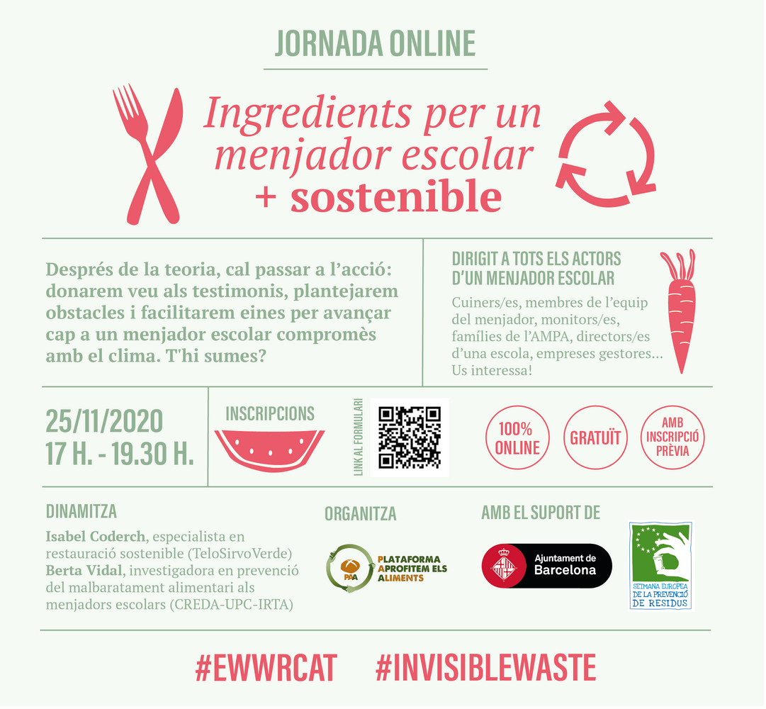 Encara disponible l'enllaç al Webinar a la home de www.aprofitemelsaliments.org i fb de la PAA (https://www.facebook.com/watch/?v=137722391098708)