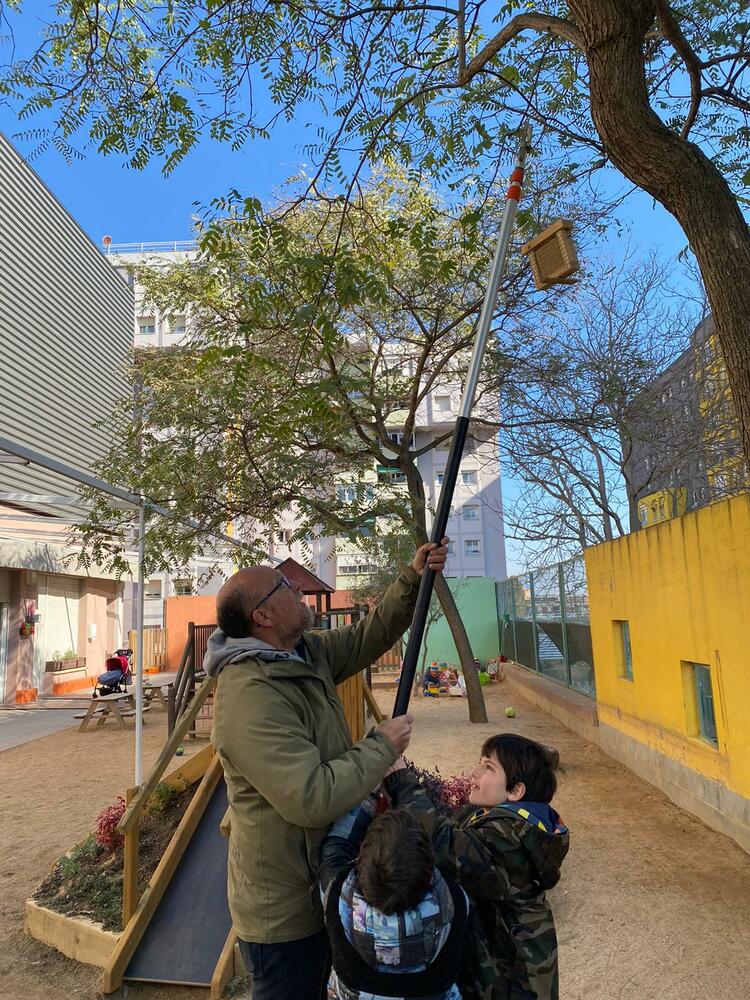 En la primera jornada crearem dues caixes niu i dues menjadores i les penjarem al pati de l'escola. Cada família també tindrà la oportunitat de crear i emportar-se a casa una menjadora pel seu balcó.