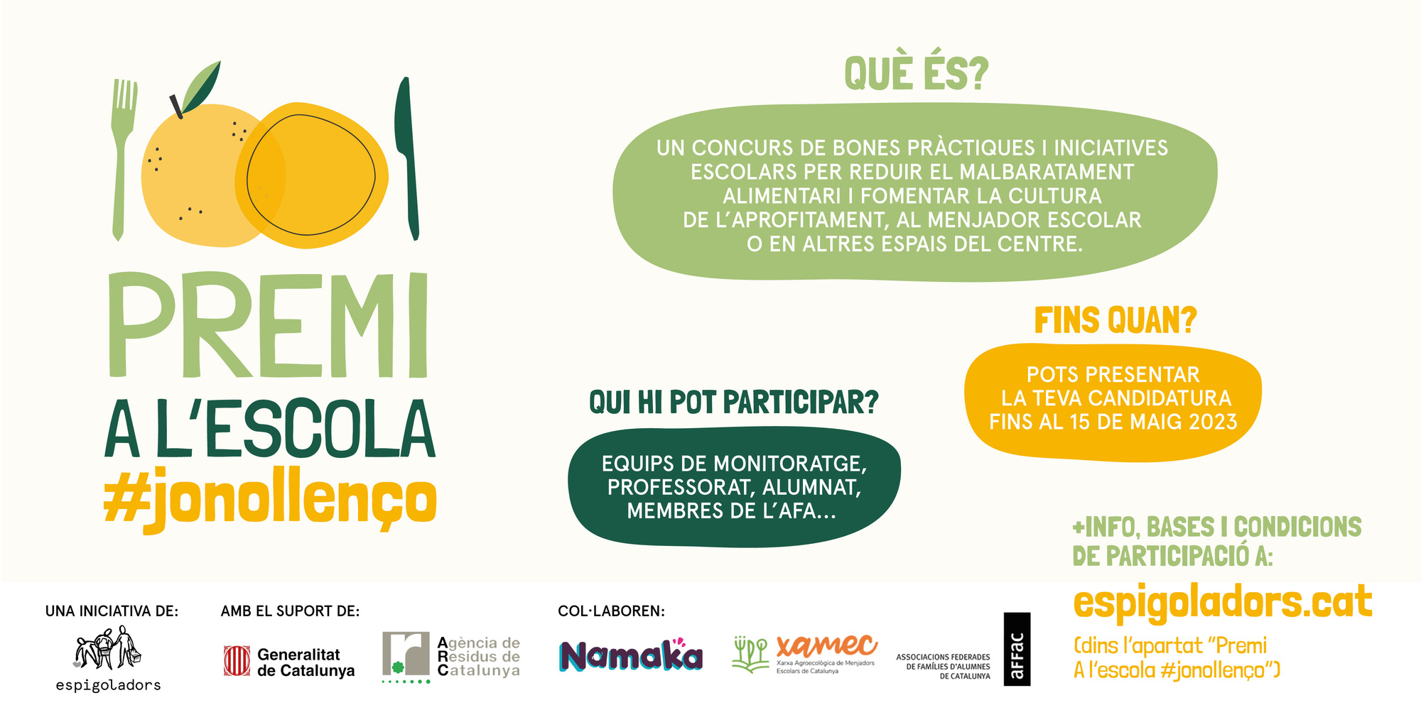 El projecte Al menjador de l’escola, #jonollenço! té com a objectiu convertir al professorat i els equips de monitoratge en agents actius en l’impuls de projectes de reducció i prevenció del malbaratament alimentari a l’escola i, en concret, al menjador escolar. Formem i assessorem per quantificar, reduir i prevenir el Malbaratament alimentari al menjador escolar.
