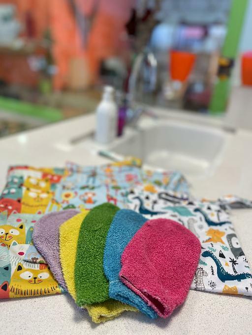 Inicialment, vam començar per substituir les bosses de plàstics d’ús comú per bosses reciclades i de roba. Però volíem anar més enllà i finalment, vam trobar una solució propera, natural i quotidiana, per substituir l'ús de les tovalloletes i les esponges sabonoses per un material sostenible i respectuós amb el medi ambient: les manyoples de cotó i les bosses impermeables.