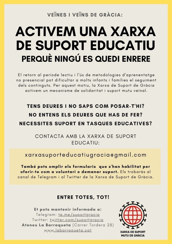 Contacte amb la xarxa de suport educatiu: xarxasuporteducatiugracia@gmail.com