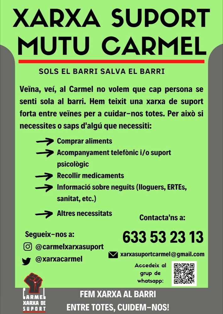 Xarxa de suport de veïns i veïnes del Carmel durant la crisi del Coronavirus.