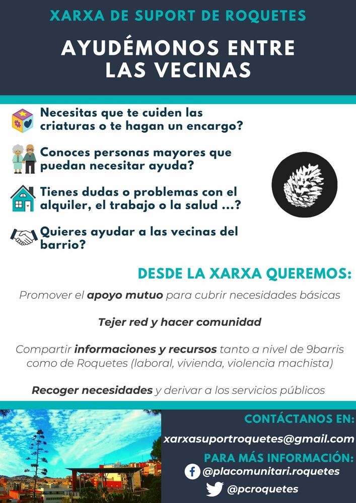 Les veïnes, veïns, entitats i serveis de Roquetes ens organitzem i engeguem la Xarxa de Suport de Roquetes.