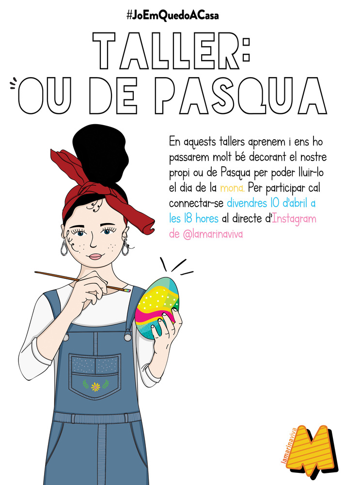 En aquest taller aprendrem i ens ho passarem molt bé decorant el nostre propi ou de Pasqua per lluir-lo el dia de la mona. Per participar cal connectar-se divendres 10 d’abril a les 18 hores al directe d ’Instagram de @lamarinaviva