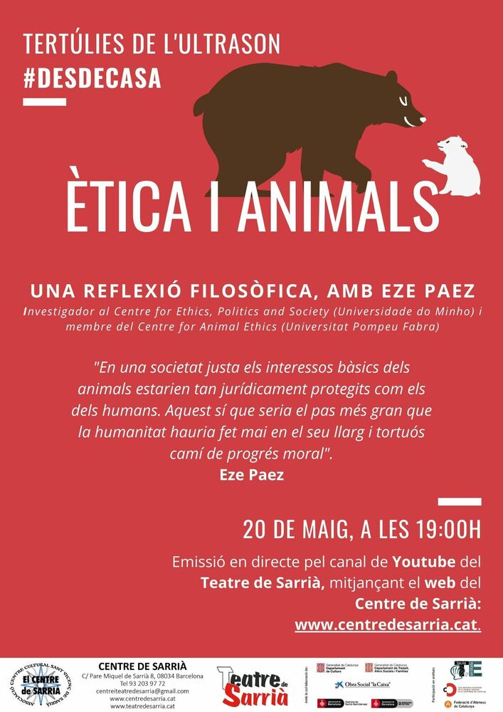 Tertúlies de l'Ultrason #desdecasa / Ètica i animals, una reflexió filosòfica