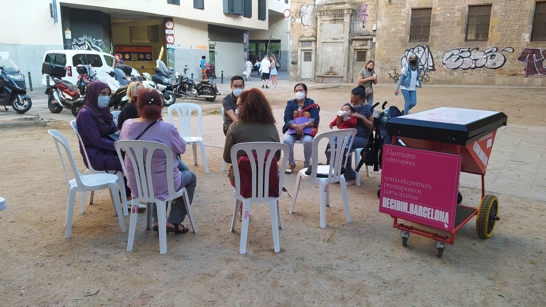 Sessió participativa amb persones usuàries de l'espai i amb famílies d'origens diversos, de fora de l'estat espanyol.