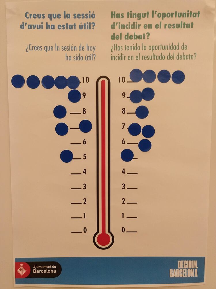 En un segon moment la ciutadania valora la definició, priorització o addició de projectes d’inversió per a incorporar al procediment de “pressupostos participatius”. En aquest cas, s’han realitzat dos grups de treball per tal d’aprofundir en els projectes d’inversió, els quals es detallen a l’apartat 9 d’aquest informe. Per a més informació del procés participatiu i per fer seguiment de les propostes i projectes sorgides de la sessió es pot consultar: https://www.decidim.barcelona/