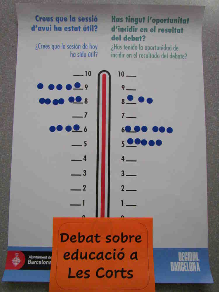 La trobada s'ha desenvolupat amb normalitat. S'han fet aportacions al Pla d'Actuació del Districte i s'han generat diversos projectes que podrien encaixar dins dels Pressupostos participatius, relacionades amb educació a Les Corts.