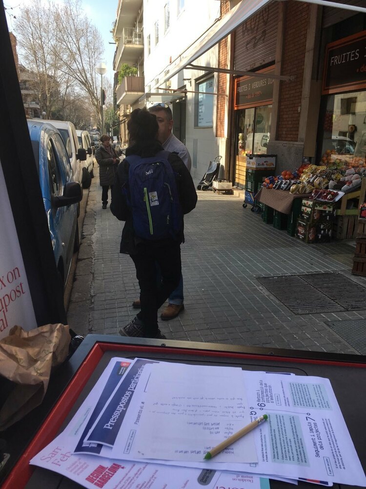 La ruta establerta era del Mercat de les Tres Torres, passant per la Biblioteca Clarà, fins a deixar el carretó a la Seu del Districte a la plaça del Consell de la Vila. Al mercat hi ha una gran afluència de públic, en gran part dones, la majoria força interessades a conèixer la informació del procés, encara que no disposen de gaire temps. Diverses persones mostren interès pel desenvolupament i metodologia del procés de pressupostos participatius, tot i que reconeixen que ho segueixen amb certa incredulitat. De totes maneres, hi ha l’expectativa de què el procés sigui transparent i que hi hagi una bona comunicació dels resultats.