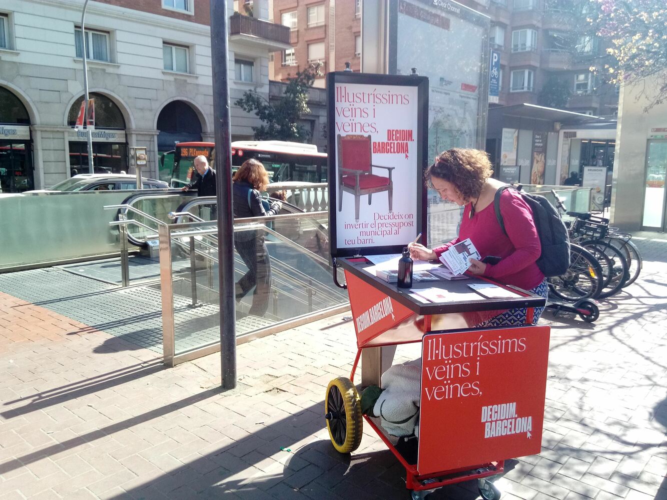S’ha realitzat l’acte de difusió a la Plaça Kennedy a la sortida dels FFCC. En aquest sentit, a causa del lloc, molta gent passava davant el carretó amb molta pressa. La gent que es va aturar ho feia amb molt interès i volien saber més sobre els pressupostos participatius, de fet alguns molt interessats a aportar alguna proposta als pressupostos participatius. Entre aquestes aportacions dels veïns i veïnes hem identificat una d’un veí adult que vol presentar un projecte de pacificació del trànsit al carrer Bertran i fer un enjardinament.