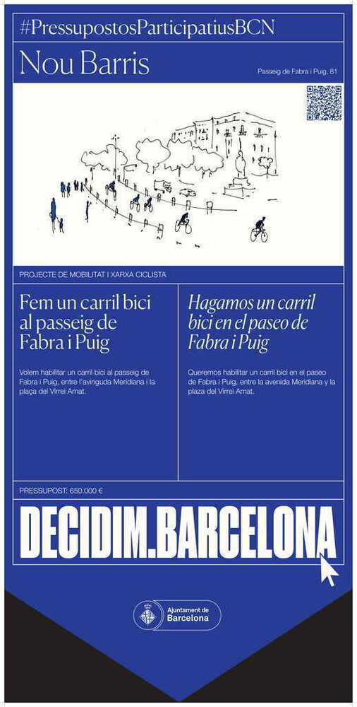 Descripció breu: Volem habilitar un carril bici al passeig de Fabra i Puig, entre l’avinguda Meridiana i la plaça del Virrei Amat.