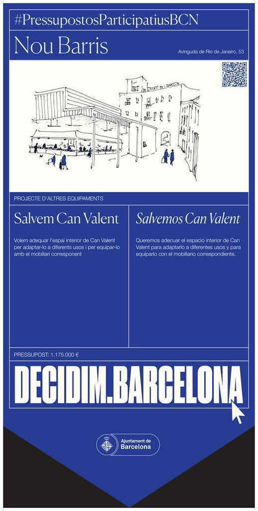 Descripció ampliada: Proposem que, un cop s’hagi consolidat l’edifici de Can Valent, se n’adeqüi l’interior per adaptar-lo a diferents usos i per equipar-lo amb el mobiliari corresponent.