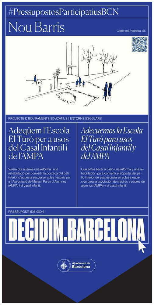 Descripció breu: Volem dur a terme una reforma i una rehabilitació per convertir la porxada del pati inferior d’aquesta escola en aules i espais per a l’Associació de Mares i Pares d’Alumnes (AMPA) i el casal infantil.