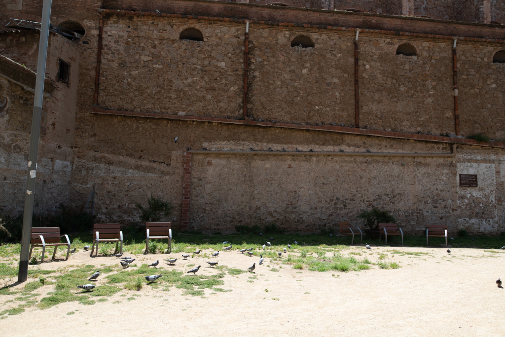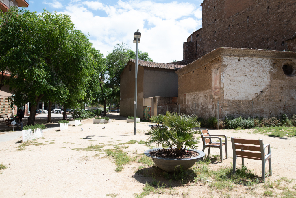 Descripció ampliada: Els entorns de l’església de Sant Andreu de Palomar estan malmesos i no afavoreixen que el veïnat gaudeixi d’aquest ampli espai a l’aire lliure.