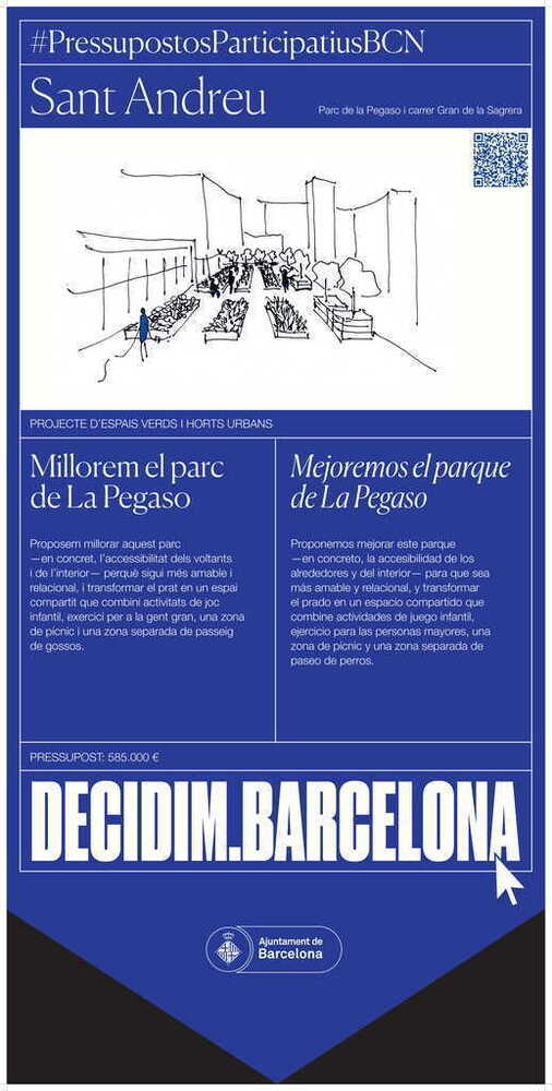 Descripció breu: Proposem millorar aquest parc -en concret, l’accessibilitat dels voltants i de l’interior- perquè sigui més amable i relacional, i transformar el prat en un espai compartit que combini activitats de joc infantil, exercici per a la gent gran, una zona de pícnic i una zona separada de passeig de gossos.
