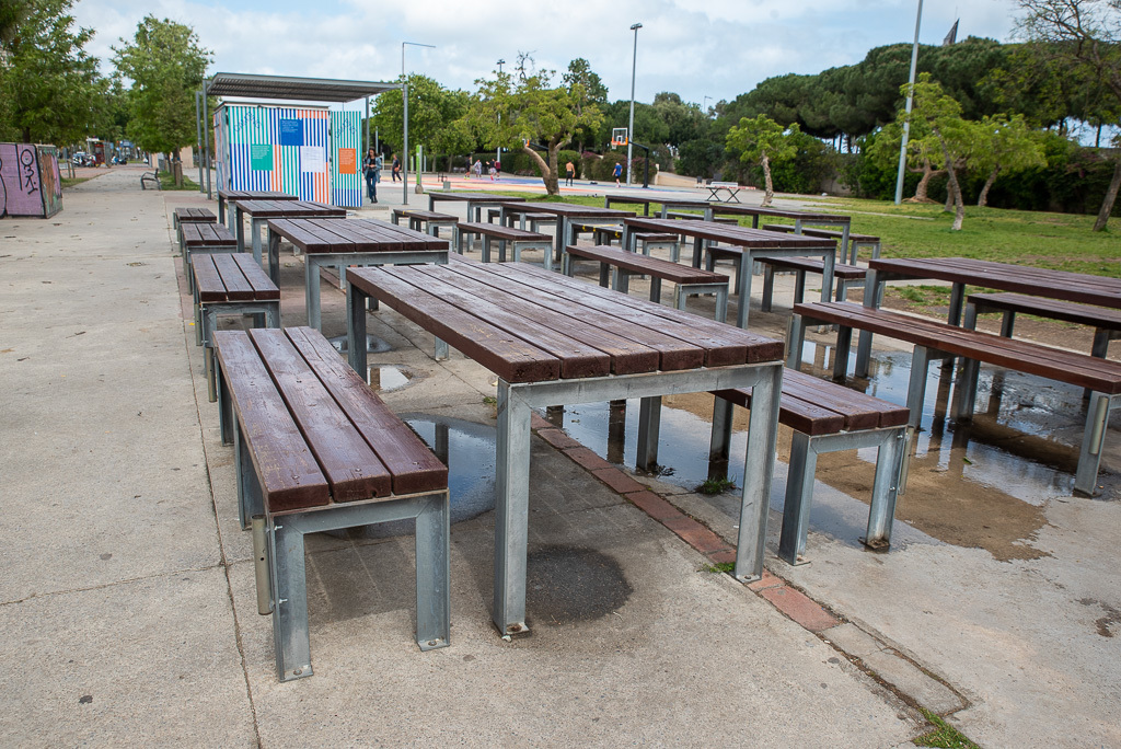 Descripció ampliada: L’espai conegut com a «parc de les taules» és una zona molt popular del parc i del barri del Poblenou i, a causa de la seva proximitat amb l’Escola Vila Olímpica, és freqüentat per moltes famílies, gent jove i infants.