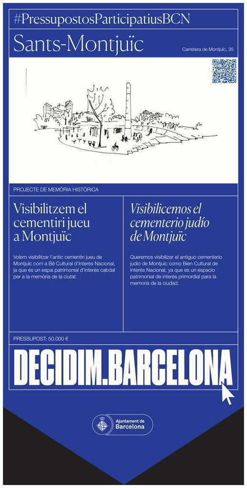 Descripció ampliada: Volem visibilitzar i dignificar aquest cementiri jueu, que es remunta al segle IX i dona nom a la muntanya de Montjuïc (mont dels jueus). La majoria de la gent no coneix la història ni la ubicació d’aquest cementiri i no sap que al subsol encara hi ha sepultures.