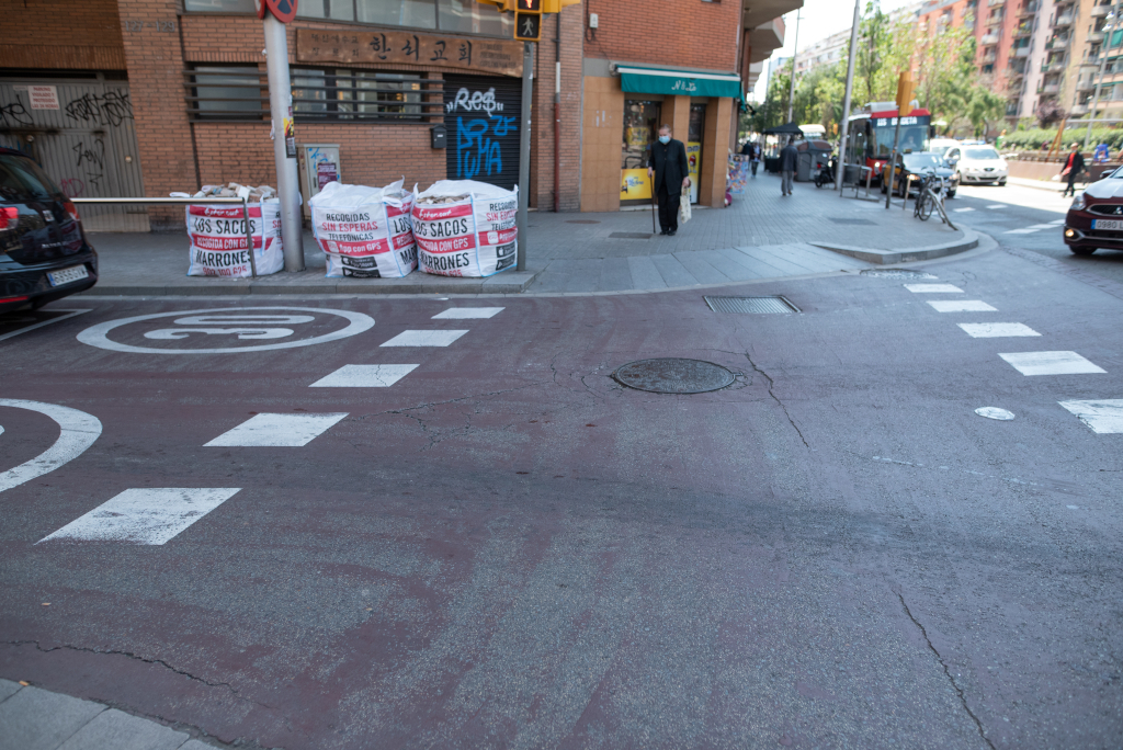 Destinaríem l’espai sobrant de la calçada a les jardineres i als contenidors de brossa que ara estan ubicats a la vorera, i ampliaríem l’espai d’estada de l’actual parada d’autobús. A més a més, pintaríem places d’aparcament per a motocicletes, n’instal·laríem algunes per a bicicletes, i definiríem zones de càrrega i descàrrega, actualment inexistents en aquest tram.