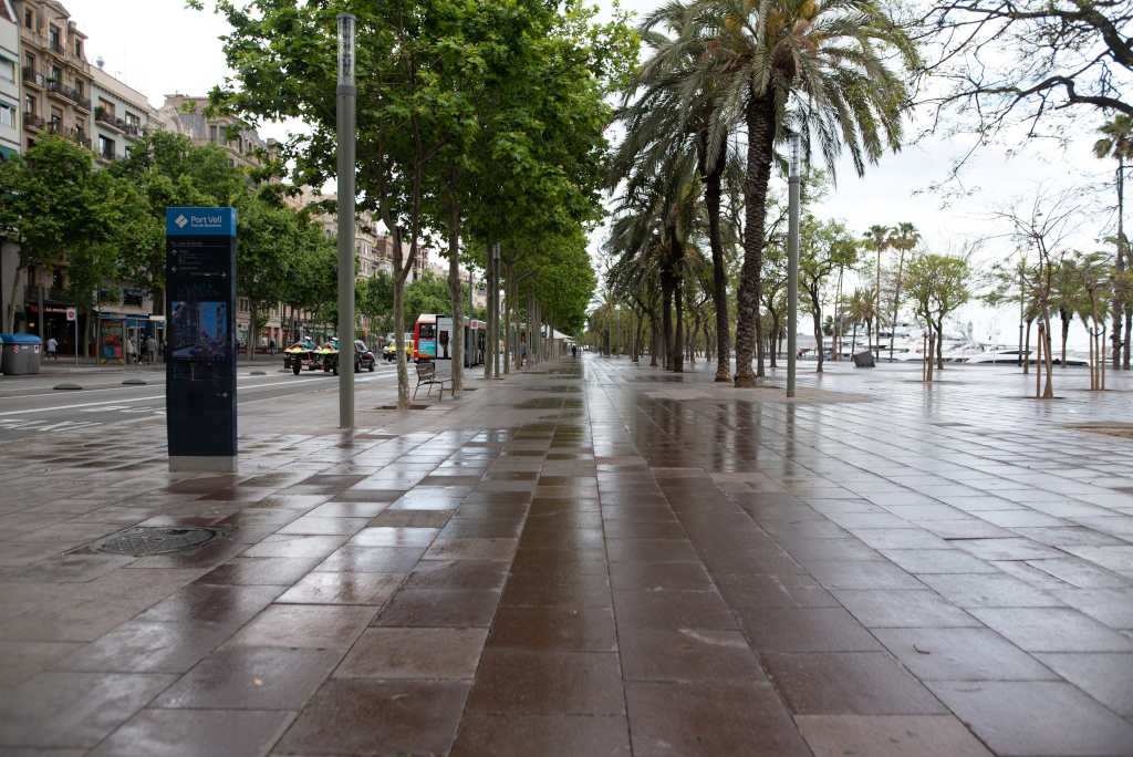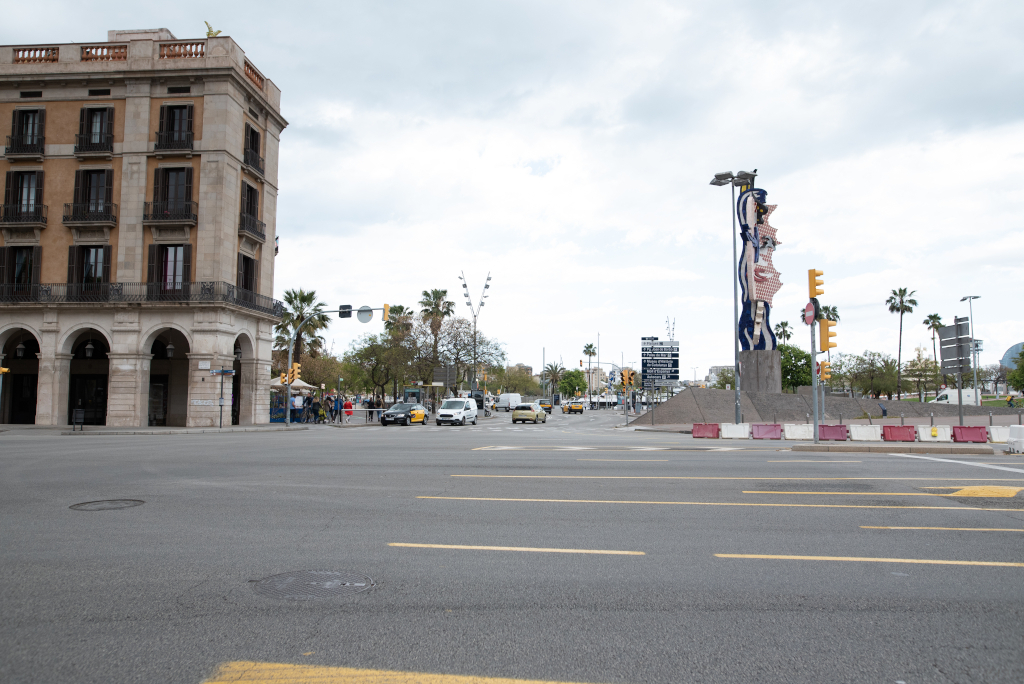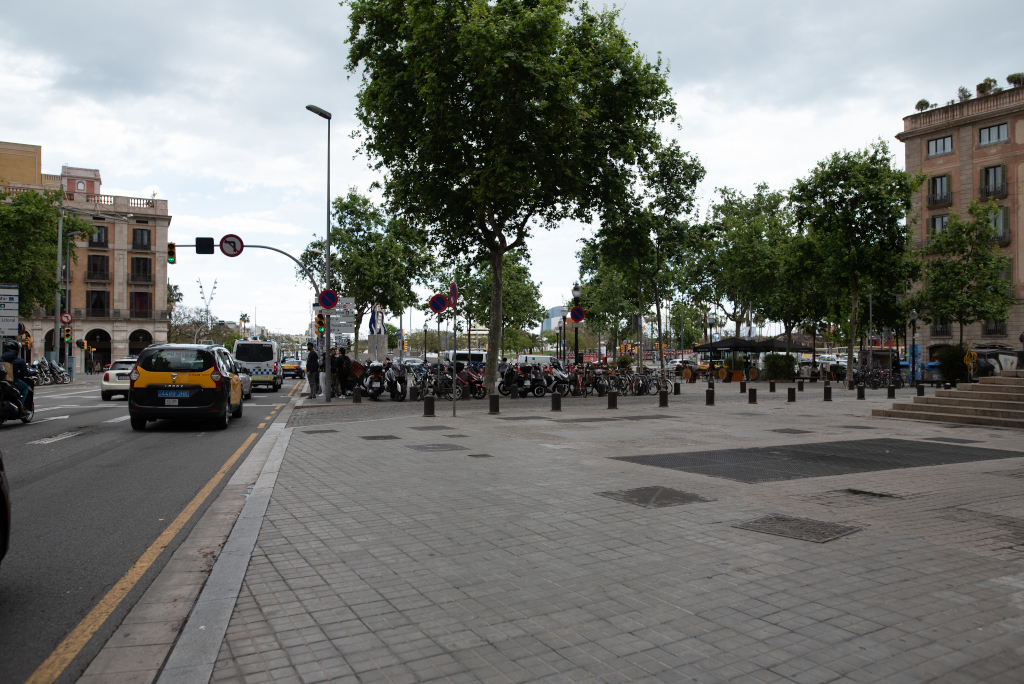 Descripció ampliada: Molts vianants i persones usuàries de bicicletes, de patins elèctrics i de bicicletes comercials circulen entre el final de la Via Laietana i el passeig de Joan de Borbó Comte de Barcelona, però ho fan sense ordre i sense disposar d’un espai propi.