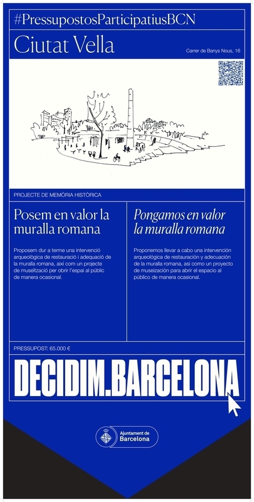 Descripció breu: Proposem dur a terme una intervenció arqueològica de restauració i adequació de la muralla romana, així com un projecte de museïtzació per obrir l’espai al públic de manera ocasional.