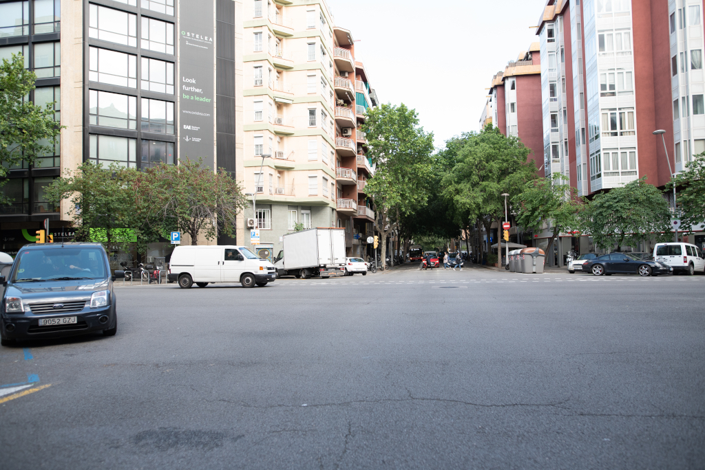 Descripció ampliada: Al carrer d’Aragó, l’espai destinat als vehicles de motor és de prop del 60%. Al llarg de tota la via, la sensació de verd i d’espai lliure és pràcticament inexistent, mentre que el soroll i la contaminació hi són ben presents.