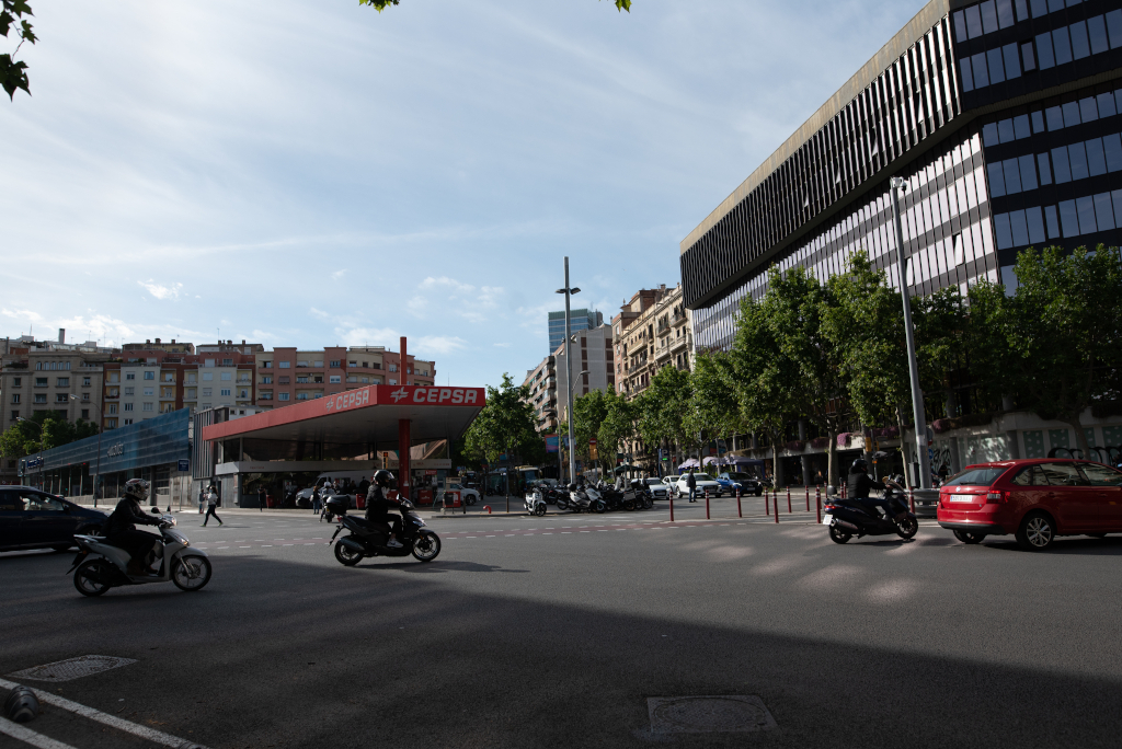 • En el segon tram -de l’avinguda de Josep Tarradellas a la plaça del Doctor Ignasi Barraquer- caldria pintar el carril de serveis (costat Llobregat), i habilitar-hi un cordó de serveis eliminant un carril de circulació i baixant les motos i els serveis a la calçada.