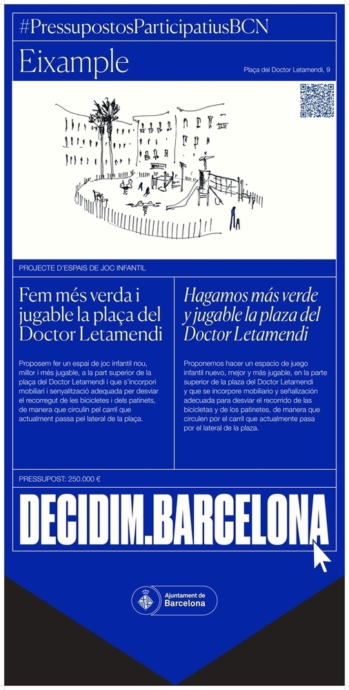 Descripció breu: Proposem fer un espai de joc infantil nou, millor i més jugable, a la part superior de la plaça del Doctor Letamendi.