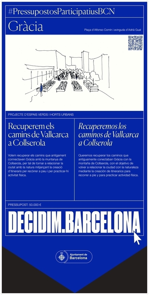 Descripció breu: Volem recuperar els camins que antigament connectaven Gràcia amb la muntanya de Collserola, per tal de tornar a relacionar la ciutat amb la natura mitjançant la creació d’itineraris per recórrer a peu i per practicar-hi activitat física.