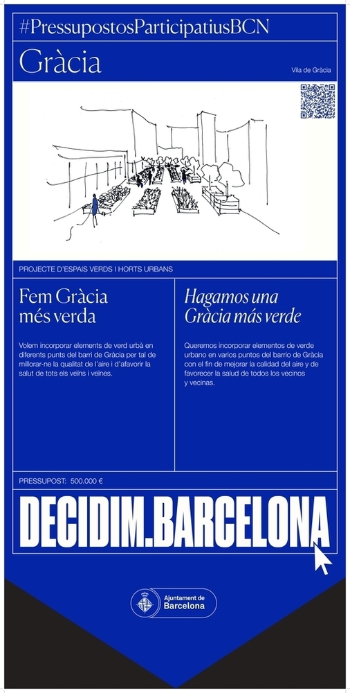 Descripció breu: Volem incorporar elements de verd urbà en diferents punts del barri de Gràcia per tal de millorar-ne la qualitat de l’aire i d’afavorir la salut de tots els veïns i veïnes.