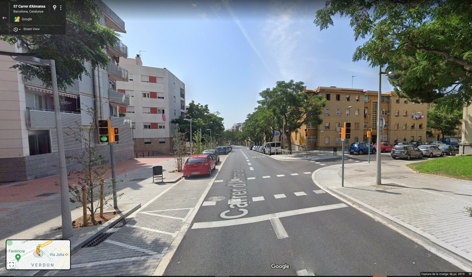Abans quan el carrer Almansa era de doble sentit no hi havia cap semàfor.