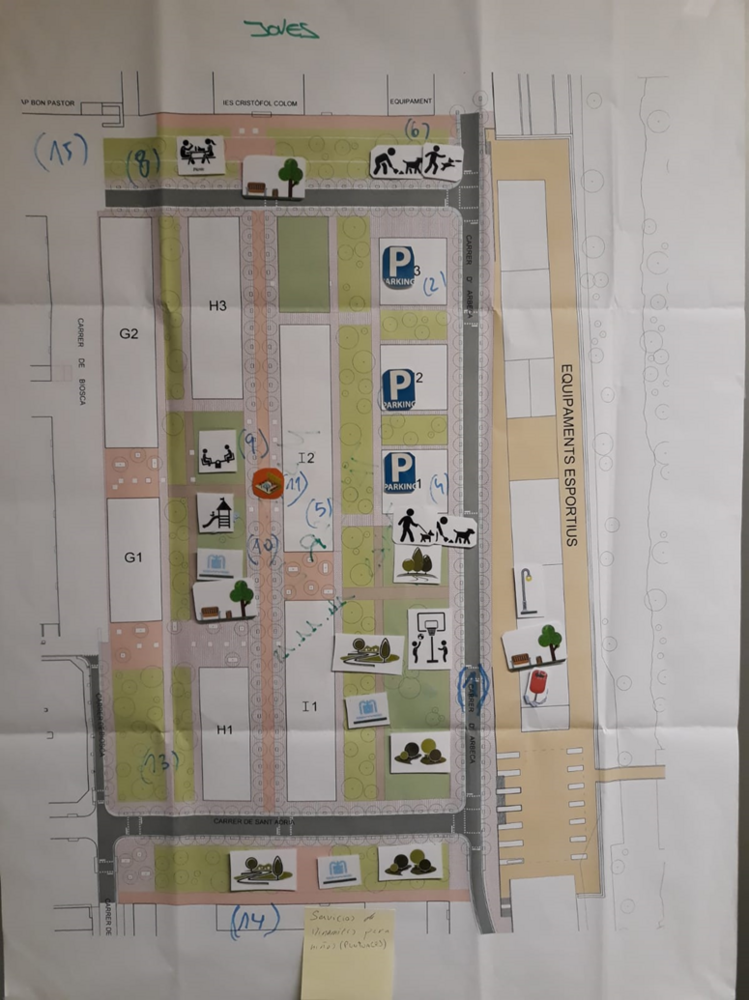 Es produeix un debat sobre l'ús de l'espai públic i es proposa que l'espai entre l'edifici H1 i el carrer Biosca no sigui un espai per "estar" sinó una zona verda sense bancs, i amb algun element innovador.