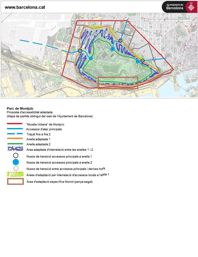 El MPGM conforma del Parc establint un perímetre definit. Aquesta tanca urbanística es la "frontera" amb la resta de la ciutat. La proposta es que aquesta sigui nexe.Les derives perimetrals connectaran el Parc amb la resta de la ciutat, totes elles podran formar itineraris que condueixin al Parc des del perímetre més exterior, sense topar-se amb un entrebanc dissuasiu per al visitant. També s'endinsa al Parc per cercar itineraris amb accés a equipaments i zones d'esbarjo