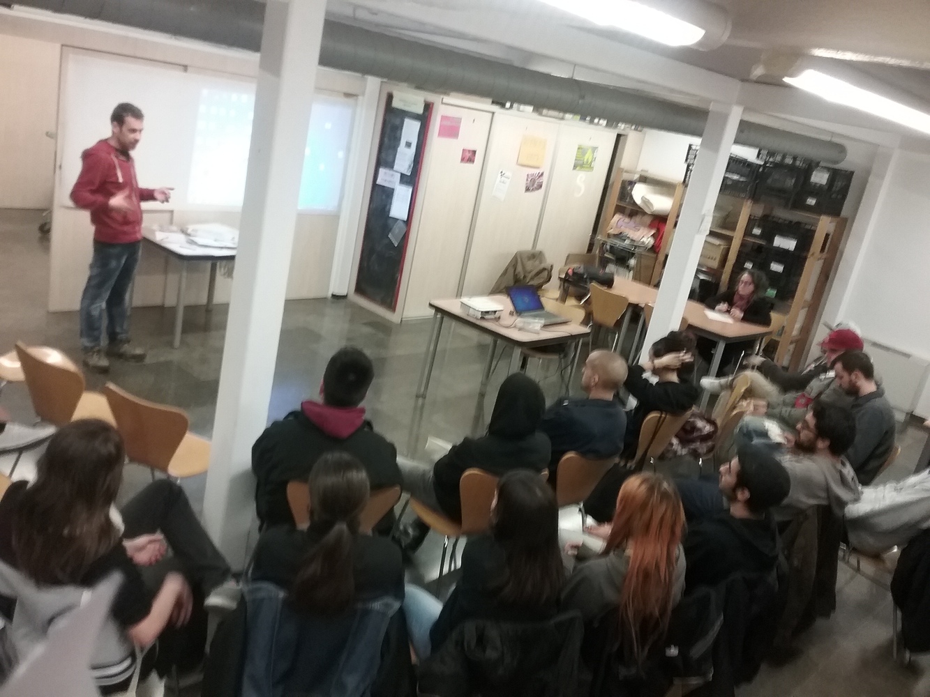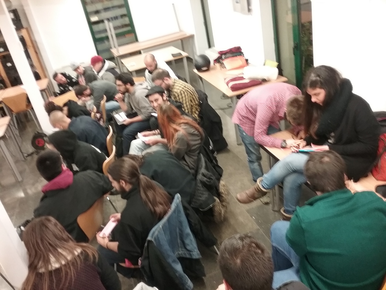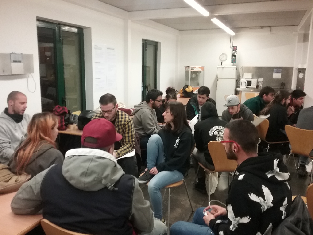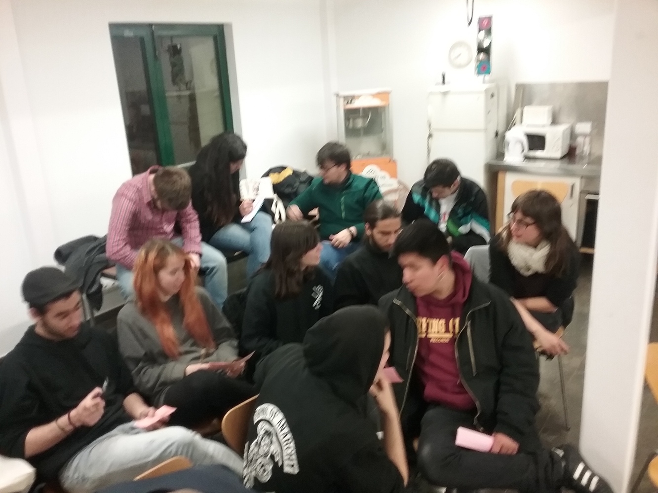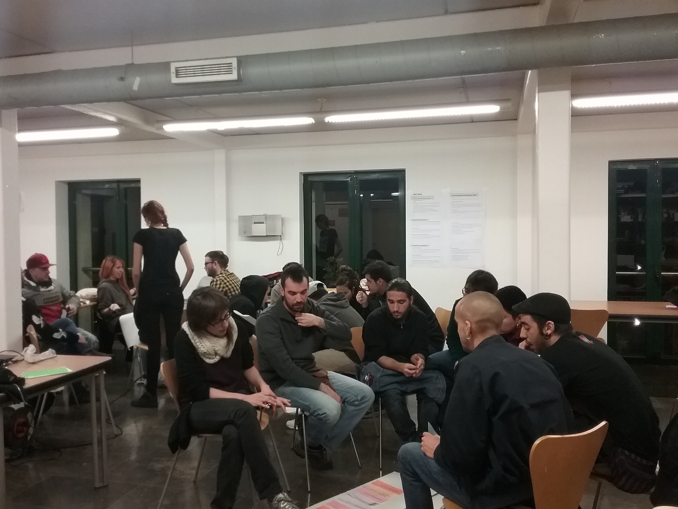 A la Masia de la Guineueta hi havia molta activitat a l’hora que es va realitzar la sessió i també hi havia cua per utilitzar l’espai quan vam finalitzar l’activitat.  A la Masia de la Guineueta havia activitats de tota mena i joves de moltes edats, inclòs nenes i nens de curta edat feien un taller de galetes. Les persones participants van arribar en grup compacte, venien de tres casals de joves dels barris de: Roquetes, Guineueta i Prosperitat, a més un polític i una dona tècnica de l’ajuntament.