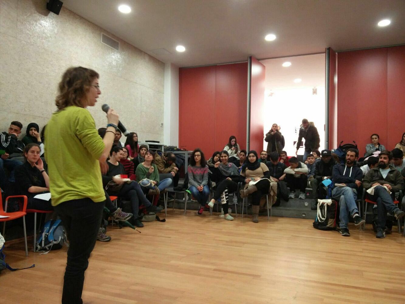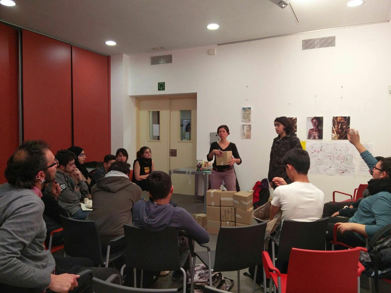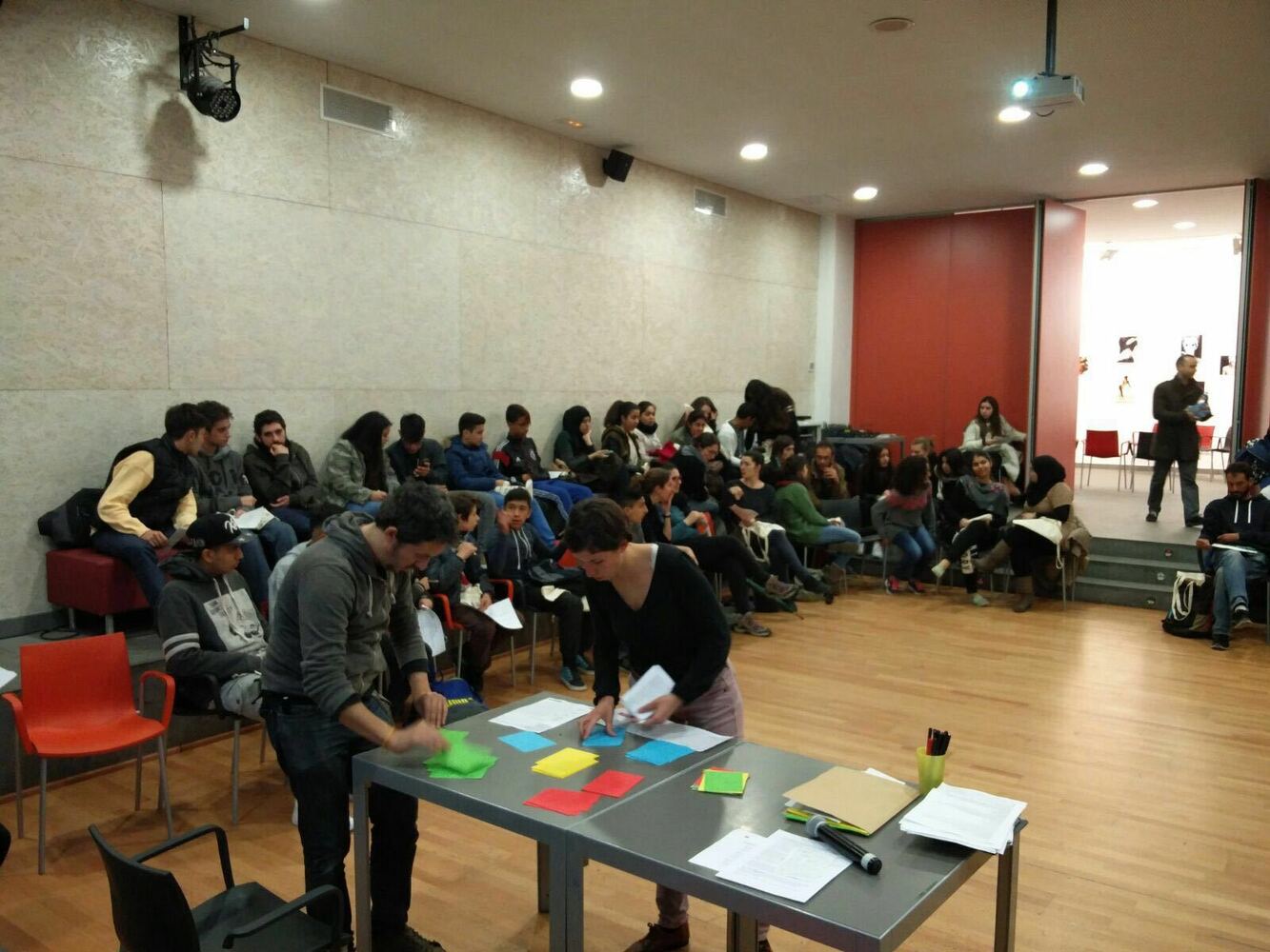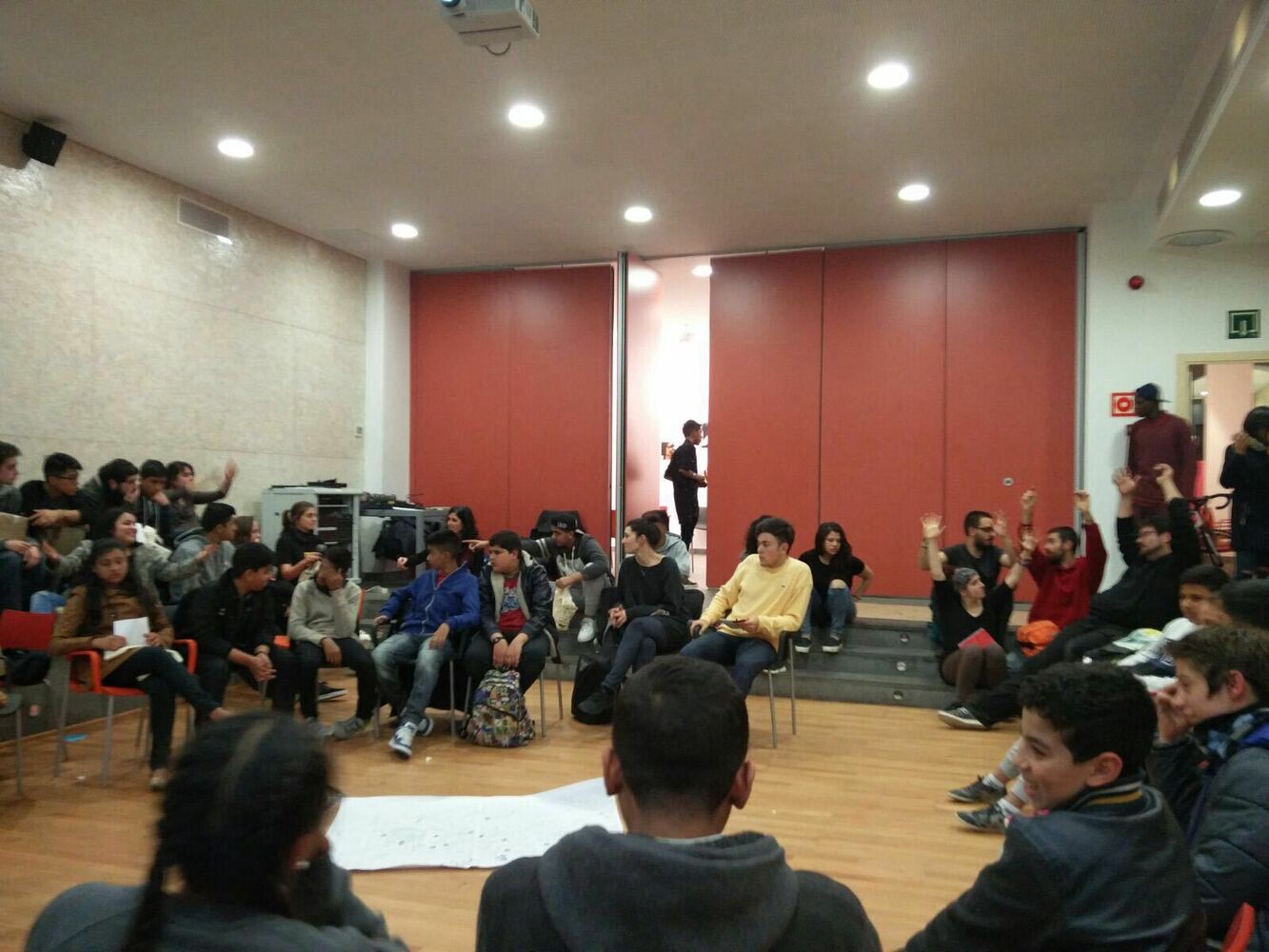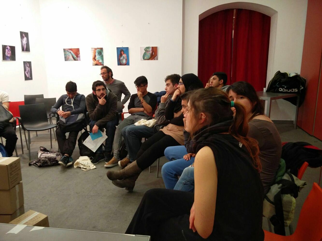 A les 18.00h van anar arribat joves i van anar fent el procés d'inscripció. Poc a poc es va anar omplint la sala i cada vegada venien més joves, gran part d'ells provinents del barri del Raval però també amb una representació dels altres barris de Ciutat Vella. També hi havia aproximadament uns 6 educadors de les entitats que acompanyaven als diferents grups de joves. El debat va començar interessant-se i preguntant als joves perquè venien al Palau Alós al taller responent ja la necessitat de que els joves puguin fer propostes pels barris de ciutat vella.