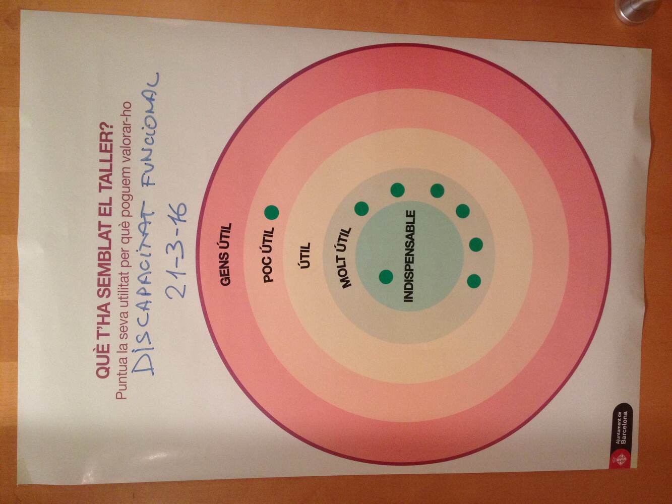 Impulsar el teatre infantil i altres espectacles accessiblesImpulsar un projecte d'exposicions inclusives als centres cívicsAdaptar la senyalística als equipamentsFer que les entitats de persones amb diversitat funcional participin en els projectes urbanísticsDinamitzar la Taula de Discapacitats del districteElaborar el Pla d'accessibilitat universalIncorporar professionals de suport per a infants amb necessitats especials als casals infantilsFer que les entitats de diversitat funcional participin en la vida comunitàriaDestacar la funció social de les festes majorsActa de la trobada