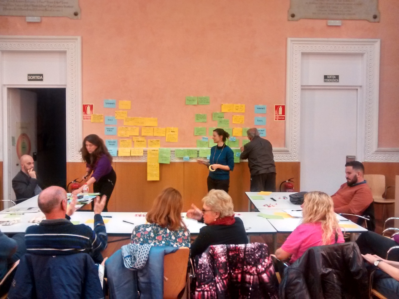 La sessió es va realitzar en un sol grup per treballar el diagnòstic i les propostes sobre 4 blocs: Vianants / Transport públic / Transport privat /Espai públic (mobilitat als carrers).El primer dubte que va sorgir és que la mobilitat s’hauria de plantejar en l’àmbit de ciutat, i a escala global. Però es recorda que es pot discutir sobre la mobilitat a totes les escales de la ciutat (carrer, barri i ciutat)Respecte a la situació actual ens trobem que el que genera més discussió és la situació actual de la superilla C2. Segons alguns veïns la idea de generar superilles queda molt bé a nivell teòric, però no funciona en la vida quotidiana dels veïns. Es crea congestió en carrers on no hi havia anteriorment, i per arribar a certs llocs s’hauria de donar moltes voltes.El següent tema important de discussió vas ser la relació entre els vianants i les bicicletes. Es va dir que per part dels vianants no hi ha cultura de la bicicleta i no es respecten als usuaris , però per part dels vianants, es va criticar l’ús de la bicicleta en als carres amb plataforma única.Altre tema important va ser el paper dels vianants al carrer. En el cas de la plataforma única, els vianants van pel mig perquè tenen prioritat respecte al cotxe. Però es produeixen situacions tals com que als pares no li agraden deixar sols als nens en aquest tipus de carrer, perquè pot arribar a ser més perillós. Hi ha conflicte entre vianants (avis, fills, pares) i vehicles motoritzats.“Una idea general durant tota la sessió va ser que el primer són les persones. Aquests haurian de ser el centre de la mobilitat, i a partir d’aquí desenvolupar els projectes. Alguns van dir que s’haurien d’aprofitar els carrers tal com els tenim”El tema de la contaminació generada pel transport, es va parlar molt poc, únicament pe l’usuari de la bicicleta.Com a idea general, també es va plantejar la millora del transport públic, demanant metro, més línies de bus i recuperar el bus 22.A continuació es fa la llista de les propostes segons la seva temàtica i suport.