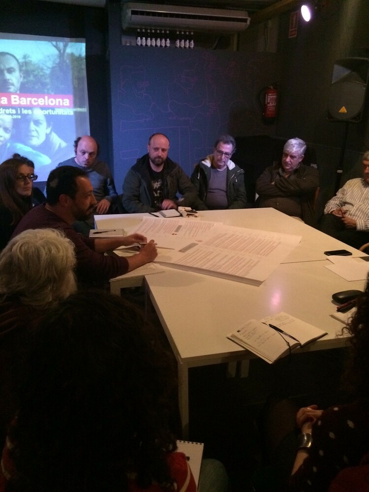 Sessió realitzada dins el Koitton Club amb representants de diferents entitats culturals del barri. La principal preocupació és la participació i com arribar a la gent. Per aquest motiu, moltes propostes es centren en descriure instruments de comunicació així com la necessitat de sumar esforços per donar-se a conèixer, tot comptant amb el suport de l'ajuntament.El debat comença amb un primera ronda de diagnosi per identificar el reptes del dia a dia i poc a poc es van formulant propostes. Finalment, es recapitula i davant l'ampli consens es considera que totes les propostes són importants i reben el suport de tots els assistents.