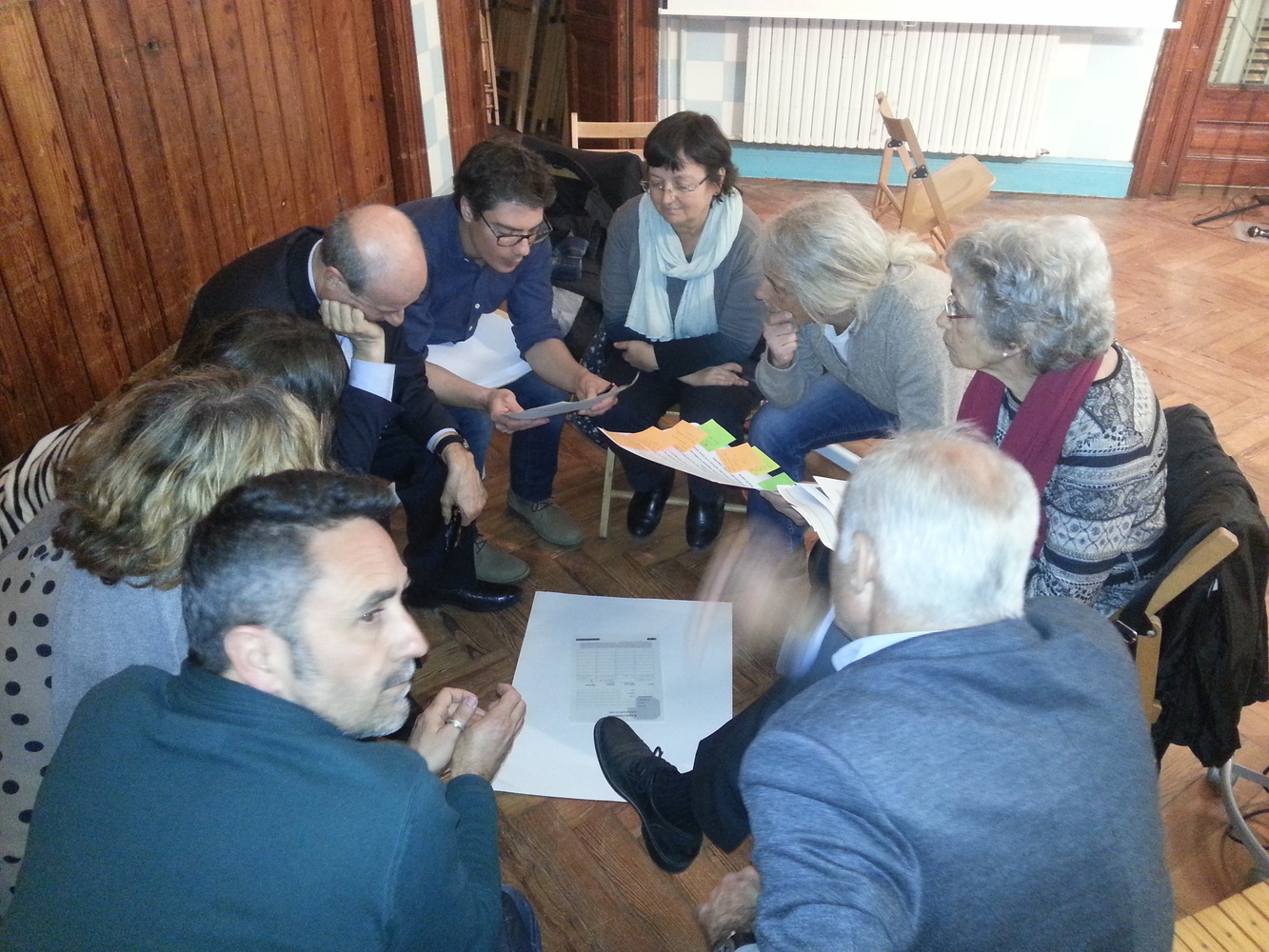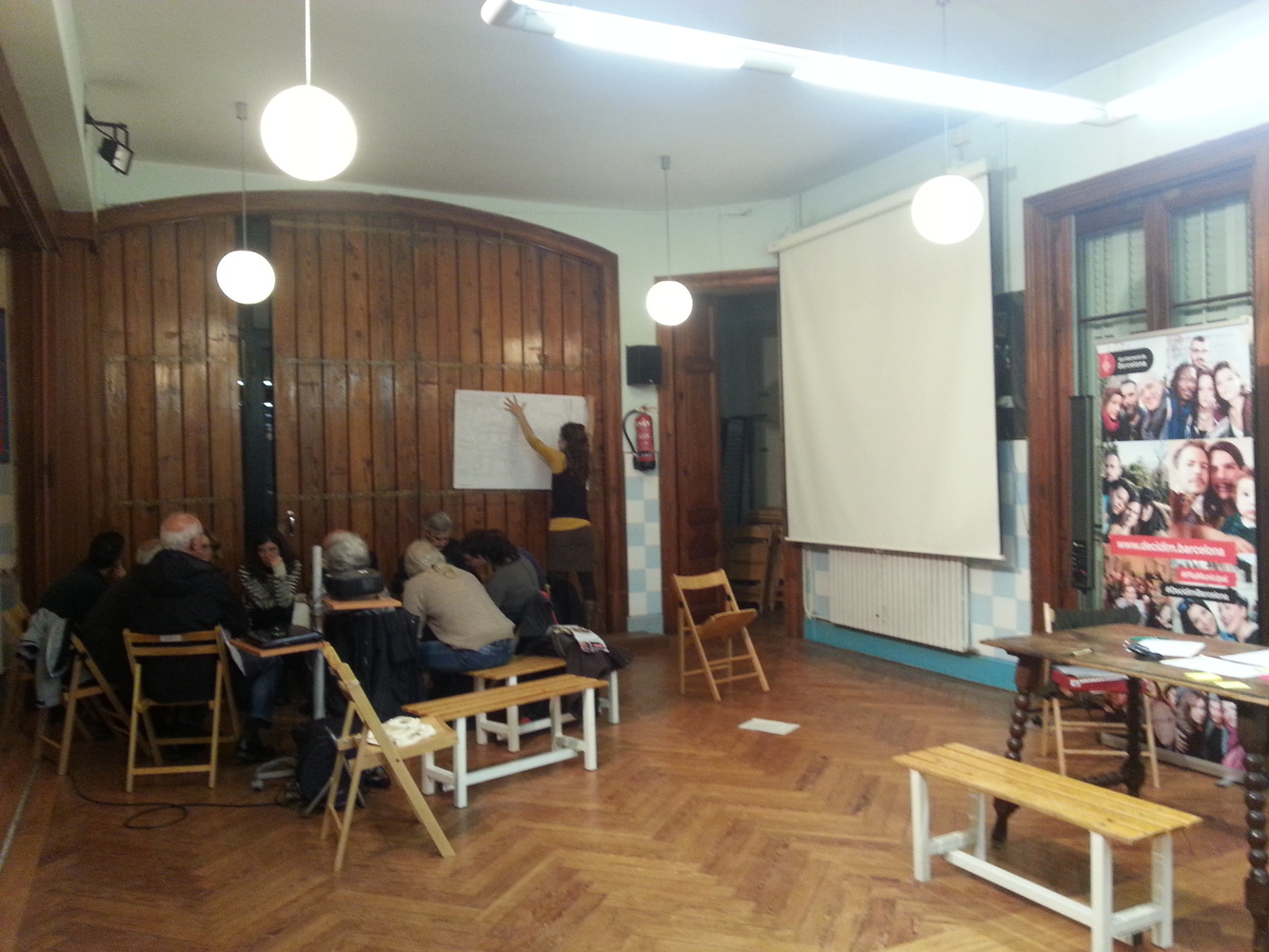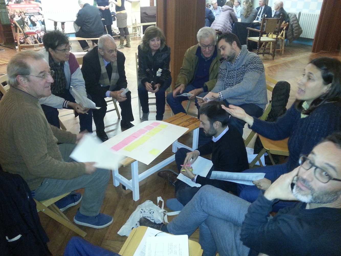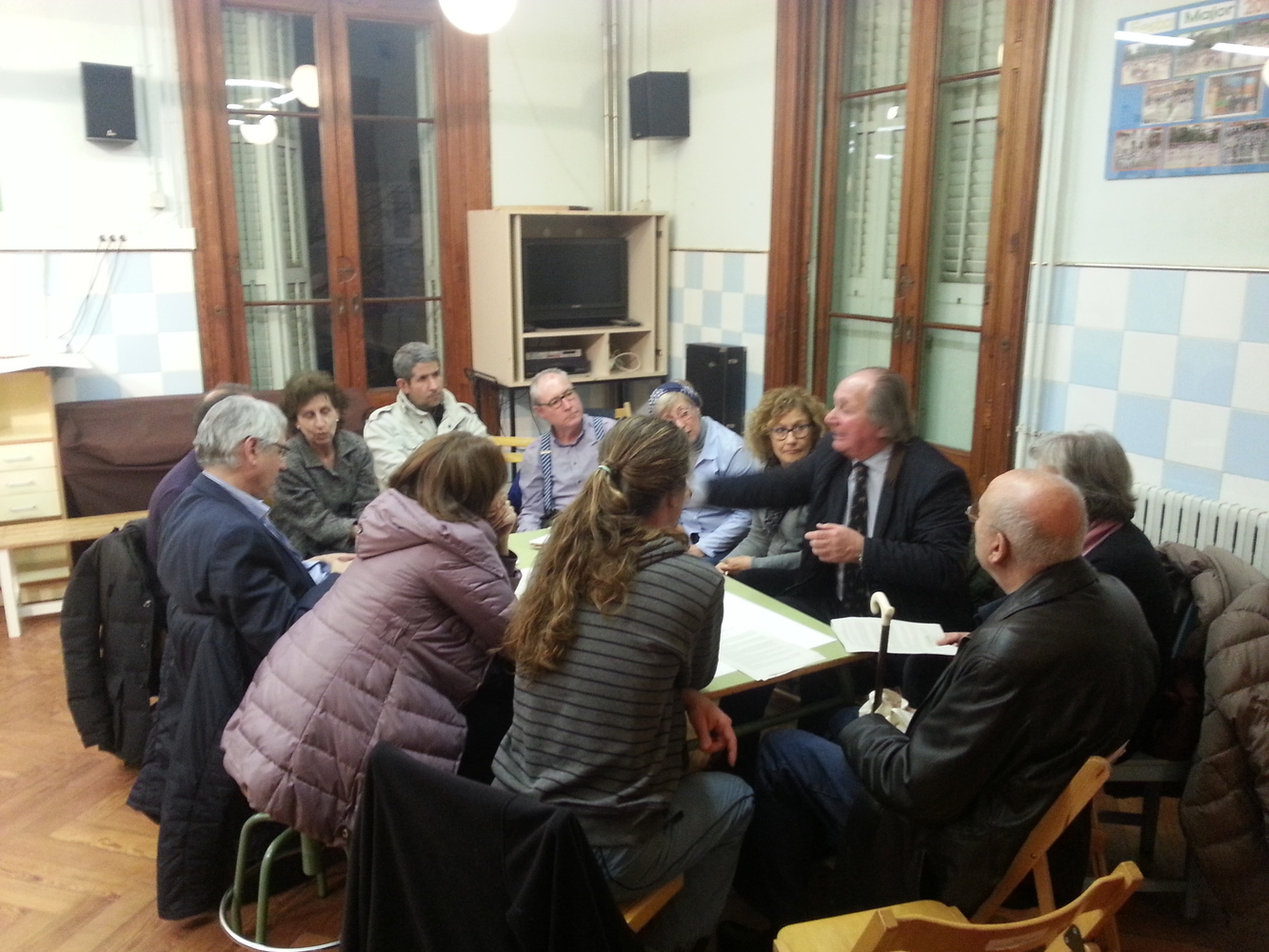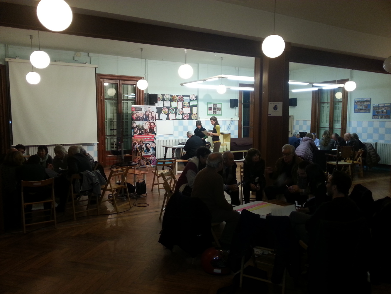 El debat va comptar amb un gran nombre d’assistents, la majoria veïns i veïnes del carrer major de Sarrià o carrers adjacents. El debat reprenia un procés participatiu anterior (2014) i alguns dels assistents que hi van participar acudien amb la idea que s’anava a presentar una proposta concreta de reurbanització, pel que aquest nou debat els va generar cert malestar.Per altra banda, hi havia persones que no havien estat en el procés anterior i estaven interessades en el contingut de la sessió, i així ho van manifestar. Un participant també va posar sobre la taula que moltes persones afectades no poden participar en els debats presencials per problemes de mobilitat (gent gran) i que s’hauria de tenir en compte la seva opinió mitjançant enquesta directa.Després de la ronda de presentació dels assistents i d’una presentació del PAM i dels acords presos anteriorment, es van fer tres grups i es van treballar els tres temes (mobilitat, mobiliari i verd urbà i usos ciutadans i comercials) en cadascun d’ells. Finalment es va fer una posada en comú per valorar quins tenien major suport o si es volien fer esmenes a les propostes. Per manca de temps no es van poder consensuar els suports al tema dels usos ciutadans i comercials, ja que van generar més debat i que depenen molt del model de reurbanització escollit, pel que caldria reprendre aquest debat.L’ambient va ser tens durant la sessió perquè els veïns i veïnes reclamen que s’executin els acords del procés anterior i van manifestar la sensació d’esgotament i pèrdua de confiança en els processos participatius. Així mateix reclamaren la necessitat de rebre resposta per part de l’administració sobre els propers passos concrets i les dates per a la re urbanització del carrer, així com altres qüestions que no es van poder resoldre en el debat.