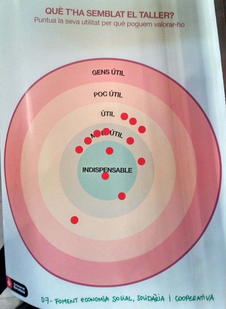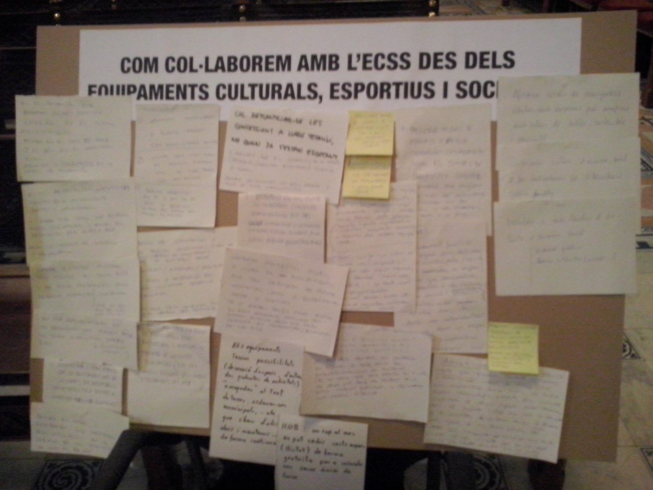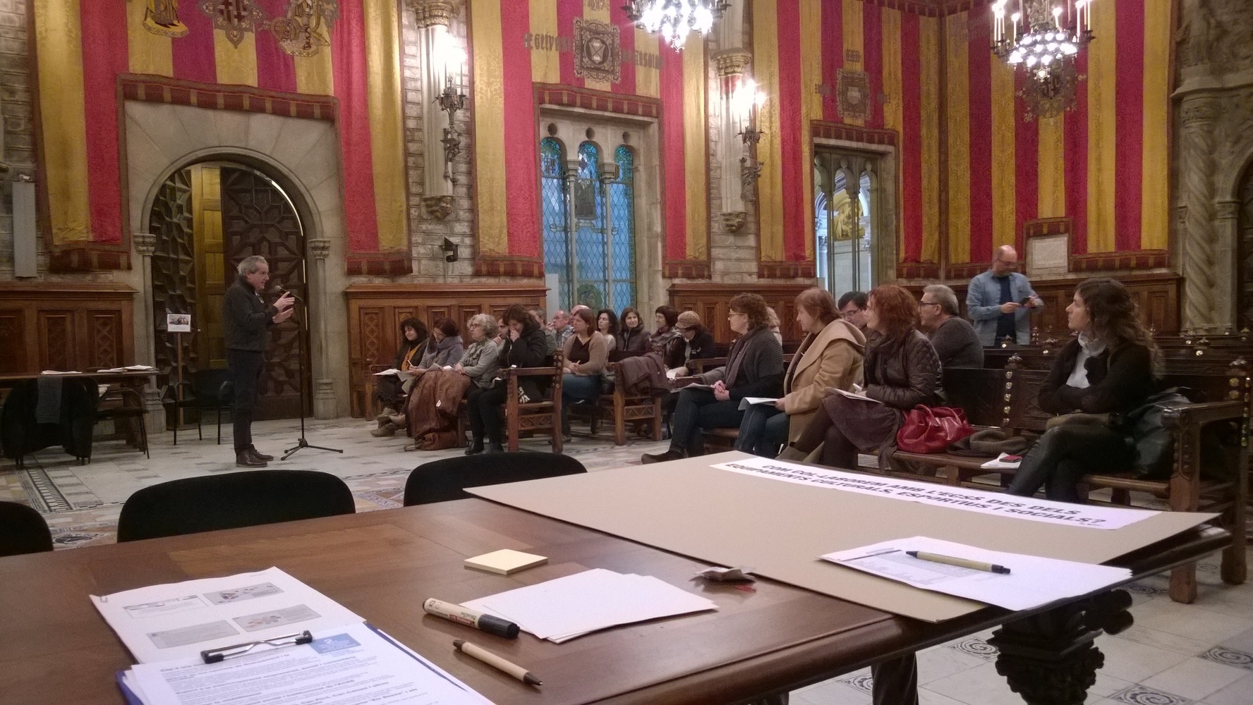 El debat va començar amb la intervenció de Xavier Rubio Cano (Tècnic de projectes d’Altres Economies) i Jordi Via (Comissionat d’Economia Cooperativa, Social i Solidària i Consum) amb una presentació introductòria sobre l’economia social, solidària i cooperativa (ECSS), assenyalant com objectius del debat com es pot reforçar, fomentar i fer més visible des dels diferents àmbits de l’ajuntament i de la ciutat i, remarcant la voluntat i la necessitat d’incloure els treballadors municipals de les diferents àrees.Després es va treballar en 3 grups simultanis de 7-8 persones entorn 3 preguntes: Com desenvolupem l’ECSS des dels àmbits i sectors de l’Ajuntament? Com col·laborem amb l’ECSS des dels equipaments culturals, esportius, socials, etc.? i Com col·laborem amb l’ECSS des de les estructures territorials? Per tal que tothom participés en el debat de cada dimensió, es van fer 3 rondes d’uns 30 min. després de cadascuna de les quals els participants canviaven de taula i es barrejaven.Finalment, en plenari, les dinamitzadores i el dinamitzador de LaCol van exposar les principals reflexions i propostes plantejades en relació a cada una de les preguntes.El debat, a les diferents taules va girar entorn com treballar perquè l’ajuntament incorpori els valors i criteris de l’ECSS (com empresa cap als treballadors i treballadores) però també com a un dels principals clients de la ciutat, com a contractant de serveis. L’ajuntament com a gran client de la ciutat podria tenir molta capacitat per impulsar i donar visibilitat a iniciatives de l’ECSS però l’actual normativa de contractació, en la que l’oferta econòmica esdevé determinant, deixa poc marge per incorporar i fer decisius els valors socials. Es proposen dues estratègies: refer la llei o aprofitar les escletxes per incorporar empreses i iniciatives a les licitacions. En qualsevol cas, es proposa acabar amb les subcontractacions que suposen perdre el control sobre aspectes fonamentals com les condicions dels treballadors/es subcontractats/des.Respecte els equipaments, es van plantejar propostes a l’entorn de l’optimització dels espais, la gestió i l’orientació al bé comú. Es proposa la cessió d’espais per a la difusió d’iniciatives de l’ECSS. Es pensa molt en centre cívics, però també en mercats o espais com l’ICUB .Els equipaments també poden tenir un paper en la incorporació mitjançant la pràctica amb fórmules de cogestió amb els usuaris de les instal·lacions i el se manteniment (p.e. en centres esportius) o en gestió promovent condicions perquè les licitacions de manteniment puguin ser desenvolupades per empreses del territori. Es proposa també convertir els mercats municipals en àgores, que incorporin i difonguin iniciatives d’ECSS i connectin amb les necessitats i projectes del territori.Per donar suport des de l’estructura municipal a les iniciatives al territori van aparèixer dues modalitats: una de centralització dels recursos (actualment dispersos) d’informació, orientació, suport i seguiment (en una mena de Torre Jussana de l’ECSS) i d’altra banda es proposa acostar els recursos allà on es generen les iniciatives, treballant des dels districtes amb l’entorn més proper. Es tracta d’escoltar, conèixer i coordinar. Generar espais on els projectes prenguin forma. Es proposa una figura que articuli el coneixement del que passa al teixit social i connecti i coordini amb els recursos i serveis municipals per a fer que els projectes prenguin forma, es desenvolupin, es repliquin etc.Pel que fa a la difusió i comunicació les propostes plantejaven utilitzar els mitjans públics per donar a conèixer les iniciatives de l’ECSS: es menciona concretament les pantalles dels equipaments, del transport públic o les cares B de les banderoles, però també cedint espais dels equipaments o utilitzar l’espai públic com altaveu. El repte és convèncer els no convençuts, arribar a les persones que desconeixen o no estan sensibilitzats amb experiències d’ECSS. En aquest sentit es proposa l’educació dels diferents esferes socials, des d’entitats com les AMPAs fins als centres educatius i els treballadors públics.En relació a la difusió es va plantejar no deixar de banda col·lectius com la gent gran, que a més de receptors d’iniciatives de l’ECSS (cooperatives de consum, d’atenció i cures, etc) poden ser protagonistes actius de projectes.Finalment, va estar present a diferents propostes la reflexió sobre potencial del teixit associatiu, és un dels més susceptibles d’incorporar experiències d’ECSS (p.e. les AMPAs). De vegades però, les entitats desconfien de l’ajuntament i per por a que aquest s’apropiï de les seves experiències eviten col·laborar-hi. En d’altres casos, el fet que rebre una subvenció pública impliqui fer figurar el logo de l’administració genera rebuig. Aquestes dificultats s’han de treballar i superar des de les estructures més properes (barris, districtes) per generar confiança i col·laboració, per sumar. D’altra banda també s’assenyala que cal anar amb compte perquè hi ha associacions que pels serveis que presten haurien de ser cooperatives.Per acabar, es recull un toc d'atenció respecte els canals oberts de participació al procés del PAM:Què passa amb les persones no entren al web? Cal tenir en compte que a Barcelona l’escletxa digital té una dimensió territorial important.Les associacions de veïns, han fet un procés participatiu amb els veïns dels seus barris per elaborar les propostes que presenten al PAM?