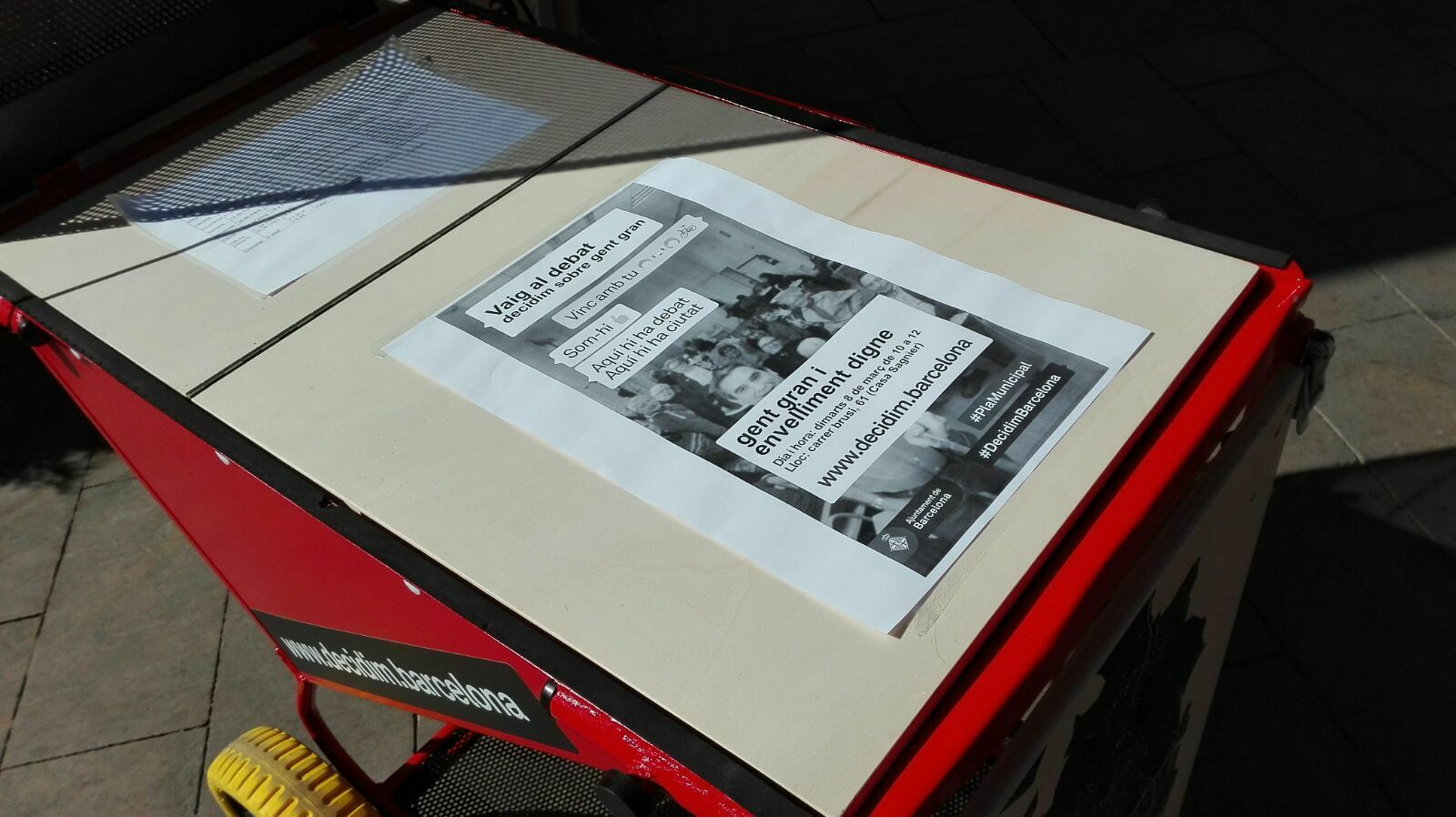 Ruta del matí ha estat al casal de gent gran de Can Fabregas i pel carrer major de Sarrià i entorn per fer difusió del debat d'envelliment digne al districte de Sarrià-Sant Gervasi