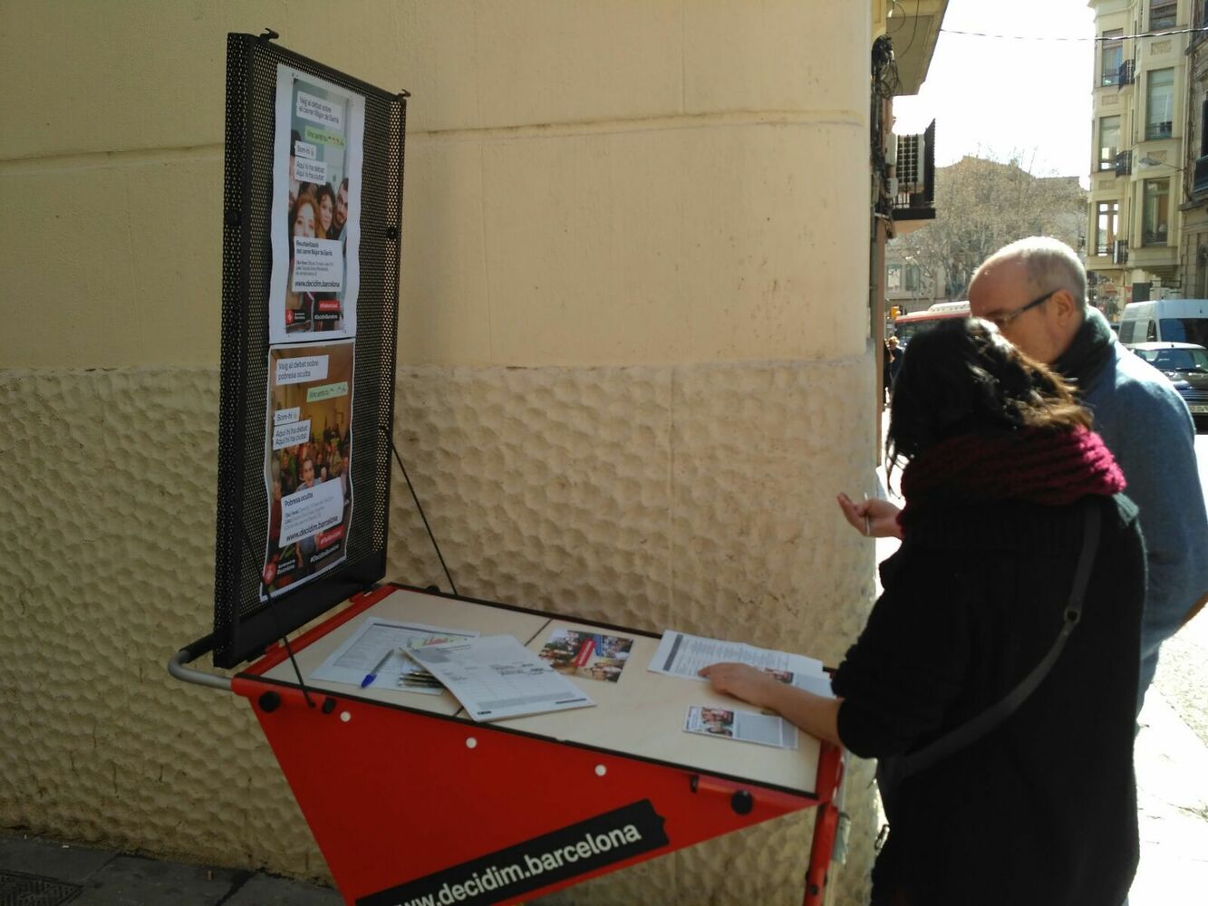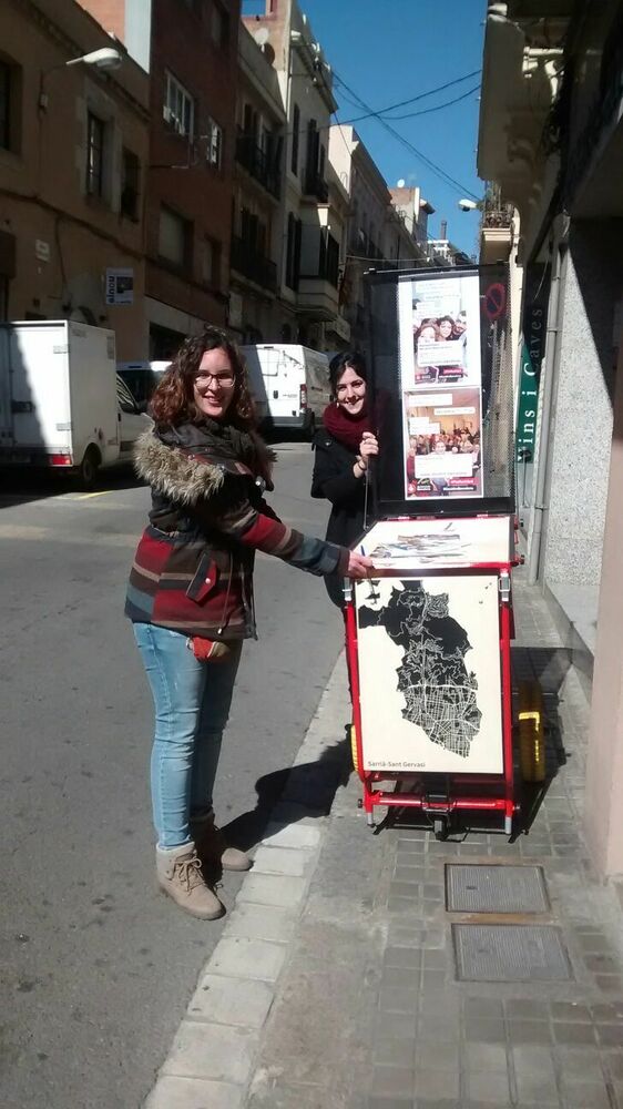 La ruta s’inicia a la plaça consell de la Vila, i ens dirigim pel carrer major de Sarrià fins la plaça Artós, a continuació desfem el recorregut i ens aturem a la Plaça Sarrià, aquesta zona del recorregut és més tranquil·la ja que és la part del carrer major de Sarrià que està pacificat i gairebé no hi passen cotxes.Després ens dirigim pel mateix carrer, Major de Sarrià, direcció a la ronda de dalt, zona que s’ha de re-urbanitzar, aquí ens trobem amb més dificultats, les voreres són molt estretes i en ocasions hem de baixar el carro de la vorera per deixar passar a altres vianants, en aquesta zona del carrer entrem als comerços per informar sobre el debat, al final del recorregut hem informat aproximadament a unes 30 persones de totes les edats però majoritàriament d’entre 40 i 60 anys.