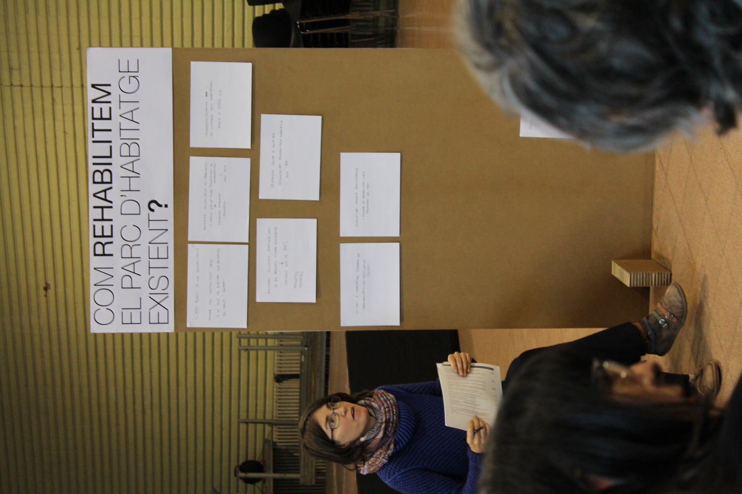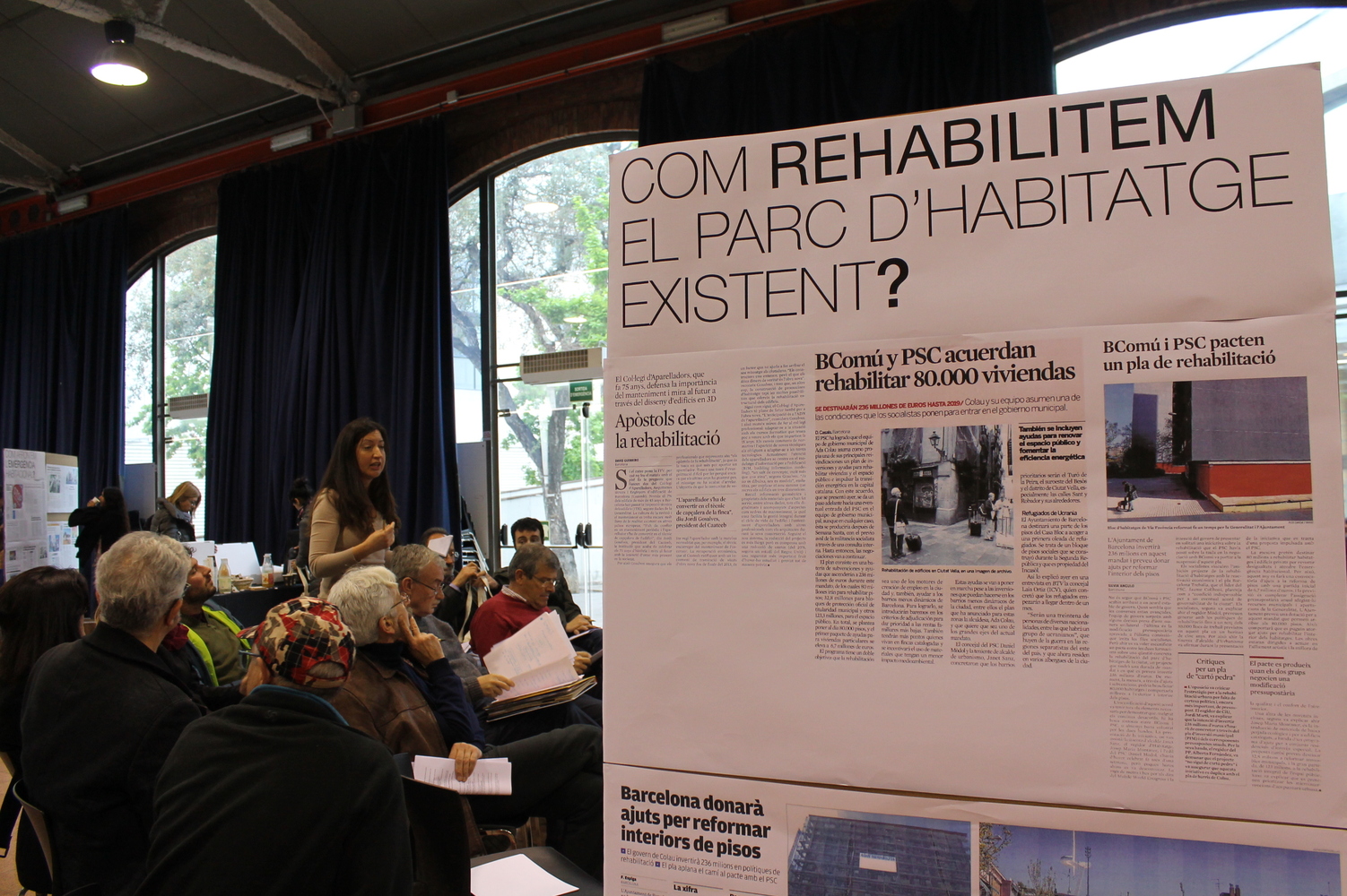 Impuls de les cooperatives d'habitatge de cessió d'úsDes de les cooperatives d'habitatge Sostre Cívic i La Borda, es destaca la naturalesa comunitària, no especulativa de les cooperatives d'habitatge de cessió d'ús, que generen habitatge assequible, estable, mantenint sempre la propietat col·lectiva dels habitatges, a més de prioritzar criteris de baix impacte ambiental. Es posen en valor les experiències en curs a la ciutat i es destaca la necessitat de crear un marc que impulsi aquestes iniciatives, comptar amb el suport de l'administració per consolidar el model: un marc regal, ajudes a la promoció i suport als agents i organitzacions, i facilitar les condicions de finançament de les operacions.Comptar amb totes les experiències cooperativesDes dels responsables d'aquestes cooperatives es posa en valor l'activitat desenvolupada per les cooperatives d'habitatge els darrers anys en la promoció i construcció d'habitatge de venda a preus assequibles. Es destaca la manca d'ajudes amb que ha treballat el sector els darrers anys i la necessitat de rebre recolzament per part de les administracions. Es proposa impulsar totes les iniciatives: noves iniciatives de cooperatives d'habitatge de cessió d'ús així com les experiències que ja existeixen al nostre territori.Generar habitatge accessible i assequibleEs proposa diferenciar el terme accessible del terme assequible. Accessible fa referència a les condicions físiques d'un espai o recorregut que permeten la circulació per a tots tipus de persones amb autonomia. Assequible fa referència el cost adequat per disposar d'un habitatge.Es destaca la dificultat de les persones amb mobilitat reduïda o diversitat funcional de trobar habitatge accessible a un preu assequible. Es planteja per tant la necessitat d'incrementar el parc d'habitatge accessible per a persones amb alguna discapacitat.Generar habitatge assequible en àmbits amb poca disposició d'habitatge protegitEs destaca la necessitat de buscar mecanismes per generar oferta assequible per les rendes més baixes en entorns amb poc habitatge protegit, en un escenari d'increment de preus immobiliaris.Repensar el Pla Sant Andreu SagreraPer generar més habitatge de protecció oficial. L'àmbit és bàsicament públic i, per tant, és possible generar més parc públic (aquest punt ve de la taula de rehabilitació però s'ha introduït aquí per agrupar temes).D) Com rehabilitem el parc d'habitatge existent?En aquest grup intervenen Tonet Font per part de l'Ajuntament de Barcelona i Ibón Bilbao, d'Arquitectes de Capçalera (ETSAB).Sostenibilitat generalEl primer pas cap a la sostenibilitat és evitar l'enderroc d'edificacions i facilitar-ne la millora o el reciclatge. El cost ambiental i econòmic de l'enderroc és molt elevat i hauria de tenir un efecte dissuasiu en qualsevol intervenció de substitució.