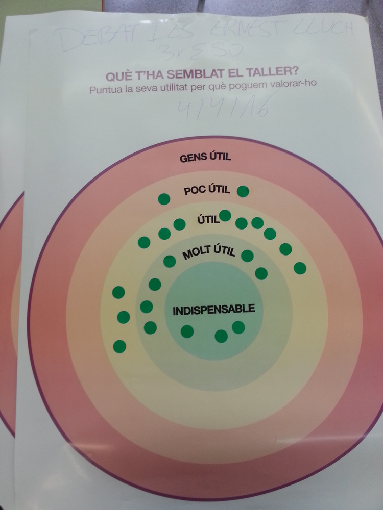 Debat amb els adolescents que estudien ESO als tres Instituts de l'Esquerra de l'Eixample. Sessions per grups als Instituts Ernest Lluch, Poeta Maragall i Viladomat.
