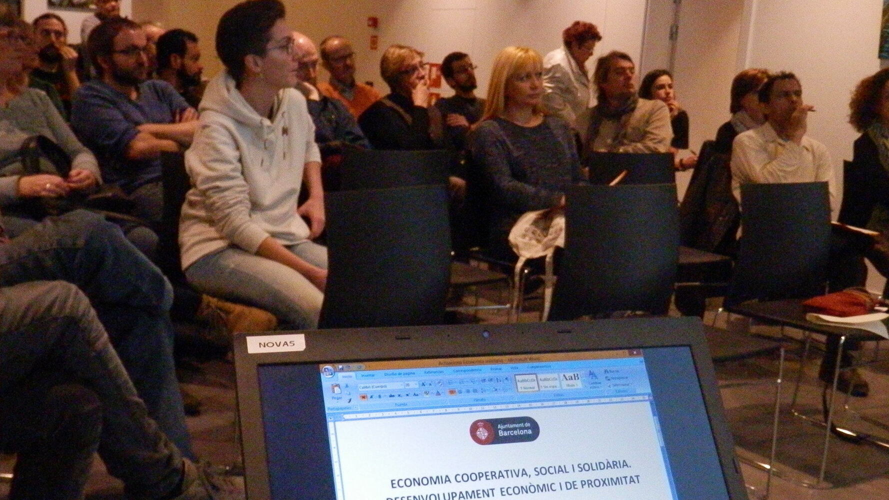 La sessió va començar amb la introducció per part de la consellera de l’Ajuntament i una exposició de la situació actual de l’economia social i solidària a Barcelona, , per part del tècnic de projectes del Comisisonat d’Economies cooperatives, Socials i Solidàries, Xavier Rubio. Es va continuar amb l’explicació de la iniciativa Can 70, narrada per les seves protagonistes, i del Grup ECOs com a projecte cooperatiu del Districte de l’Eixample Quelcom que es va valorar molt positivament.La distribució per grups de treball (1) Responsabilitat social en el comerç (2) Economia solidària i (3) Economia comunitària va facilitar el llançament de noves propostes i que tothom digués la seva.El debat, així com la millora de propostes a través de l'interncavi de visions i opinions va ser molt positiva i amb un to molt respectuós.
