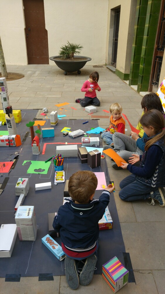 Contingut de l’activitatL’activitat consistia en reflexionar sobre les coses que ens agraden i no ens agraden de la ciutat on vivim i construir la ciutat dels nostres somnis. Després de la presentació de l’activitat, s’han fet algunes preguntes als infants:− Què us agrada de l’entorn de l’escola? I del barri on viviu?− Què no us agrada?− Què hi trobem a faltar?− És bonic el vostre barri?− Trobeu arbres? I animalons?− Què us agrada fer quan estem al carrer?Posteriorment hem passat a construir la ciutat dels nostres somnis sobre un plànol que teníem al terra, utilitzant caixes de cartró i diferents papers de color.ParticipantsEn total han participat un total aproximat de 25 infants, amb un 75% d’ells d’edats compreses entre 4 i 6 anys, i un 25% majors de 6 anys. Inicialment hi havia més nois, però al final de la sessió el nombre de nenes i nens ha estat similar.També han participat alguns infants menors de quatre anys, que han comptat amb l’ajuda de les seves mares.Desenvolupament de la sessióLa sessió s’ha desenvolupat en una cantonada de la Plaça del Consell de la Vila on no es podia produir l’accés de vehicles i on l’espai quedava acotat per una façana d’un habitatge.S’ha presentat l’activitat als infants asseguts en rotllana i s’han fet les preguntes de reflexió anteriors.Els infants comptaven amb una sèrie de siluetes on apareixien diferents animalons, arbres, activitats, i han escollit aquelles que representaven millor allò que els agrada de la ciutat on viuen o allò que els agradaria trobar. Han respost coses com: arbres, aus, jugar a futbol, anar en bicicleta, etc.Posteriorment hem mirat la ciutat que teníem al davant i han trobat que era una ciutat molt grisa i els infants han explicat que els agradaria una ciutat amb més arbres, més parcs, més flors, i que els edificis tinguessin més color. També que hi haguessin més equipaments com camps de futbol, piscines, etc.Mitjançant ceres i papers de color han desenvolupat totes aquestes idees i han modificat la imatge de la ciutat.Valoració de la sessióLa valoració és positiva per la participació i l’atracció que ha provocat l’activitat, facilitat pel lloc escollit, de gran afluència a aquesta hora.El fet d’estar en un espai exterior ha donat molta visibilitat i ha fet que nens i nenes que estiguessin en la plaça jugant s’aproparen a veure de què es tractava. No obstant, aquest fet ha comportat que la participació de nens i nenes fos intermitent, i que hi haguessin moltes entrades i sortides de participants. Molts d’ells venien, estaven una estona i després marxaven cap a casa, sobretot al voltant de les 18’45-19h. L’activitat assumeix bé aquesta participació discontínua perquè amb la col·laboració de totes les participants va construint-se col·lectivament la ciutat que volem.De l’activitat es desprèn que els nens i nenes tenen una opinió formada sobre aquelles coses que aprecien a la ciutat i aquells espais dels que gaudeixen més. També opinen sobre aquells aspectes que troben a faltar o que creuen que es poden millorar.